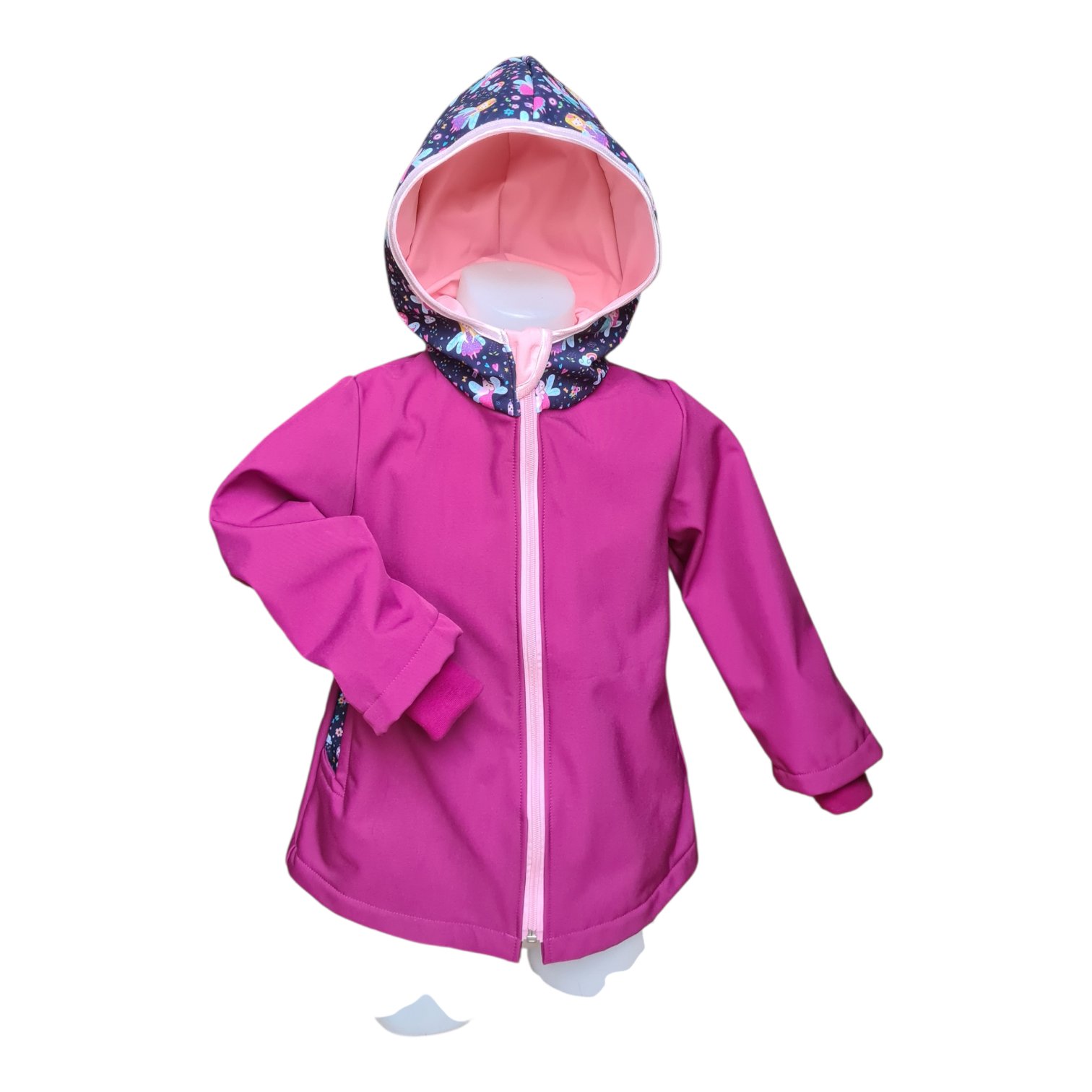 Dívčí softshellový kabátek s fleecem je ideální volbou pro přechodové období – jaro a podzim. Funkční softshellový materiál poskytuje spolehlivou ochranu proti větru a mírnému dešti, zatímco fleecová podšívka zajišťuje dostatek tepla i v chladnějším počasí. Kapuce je podšita softshellovou podšívkou, rukávy jsou opatřeny bavlněnými náplety, kabát tedy roste s Vašim dítkem, určitě jej tak využijete více než jednou sezonu. Maminky ocení praktické poutko na zavěšení.