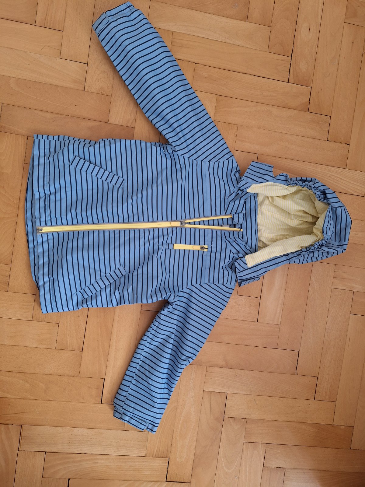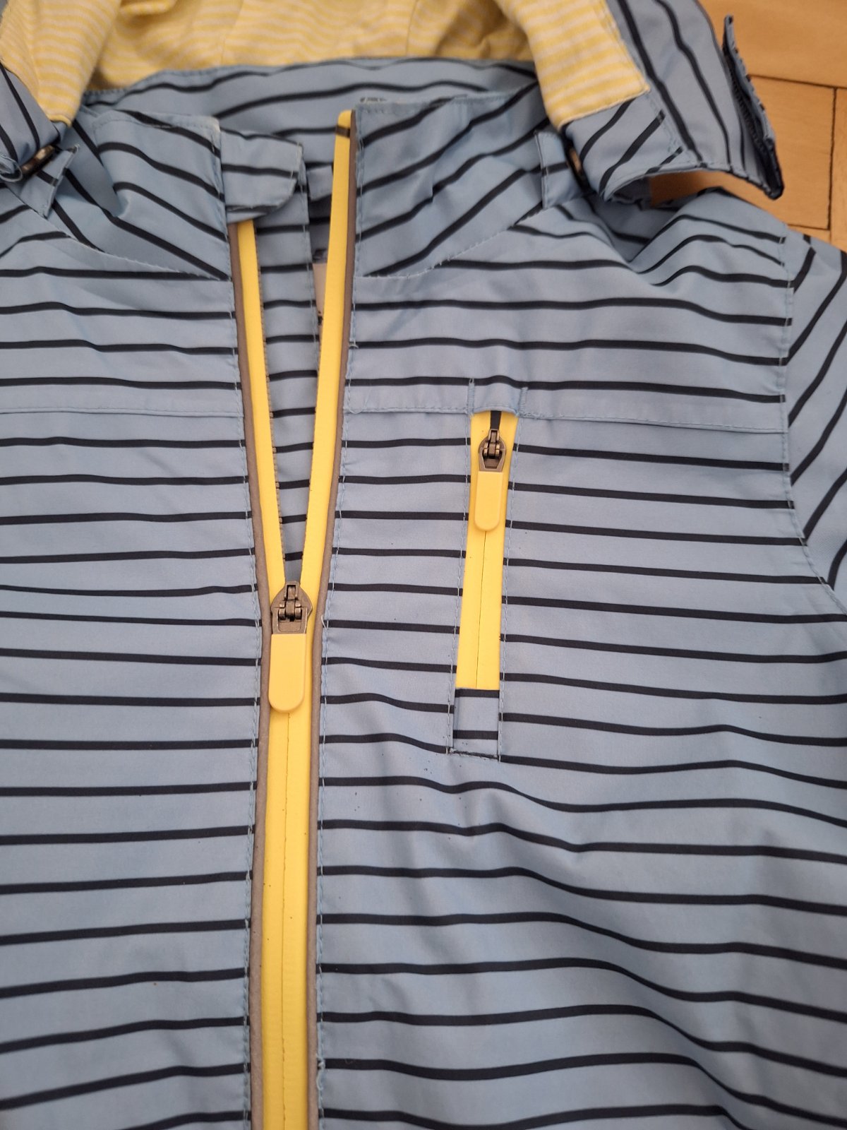 Pěkná nepromokavá bunda. Uvnitř látková podšívka. Velikost 98-104.