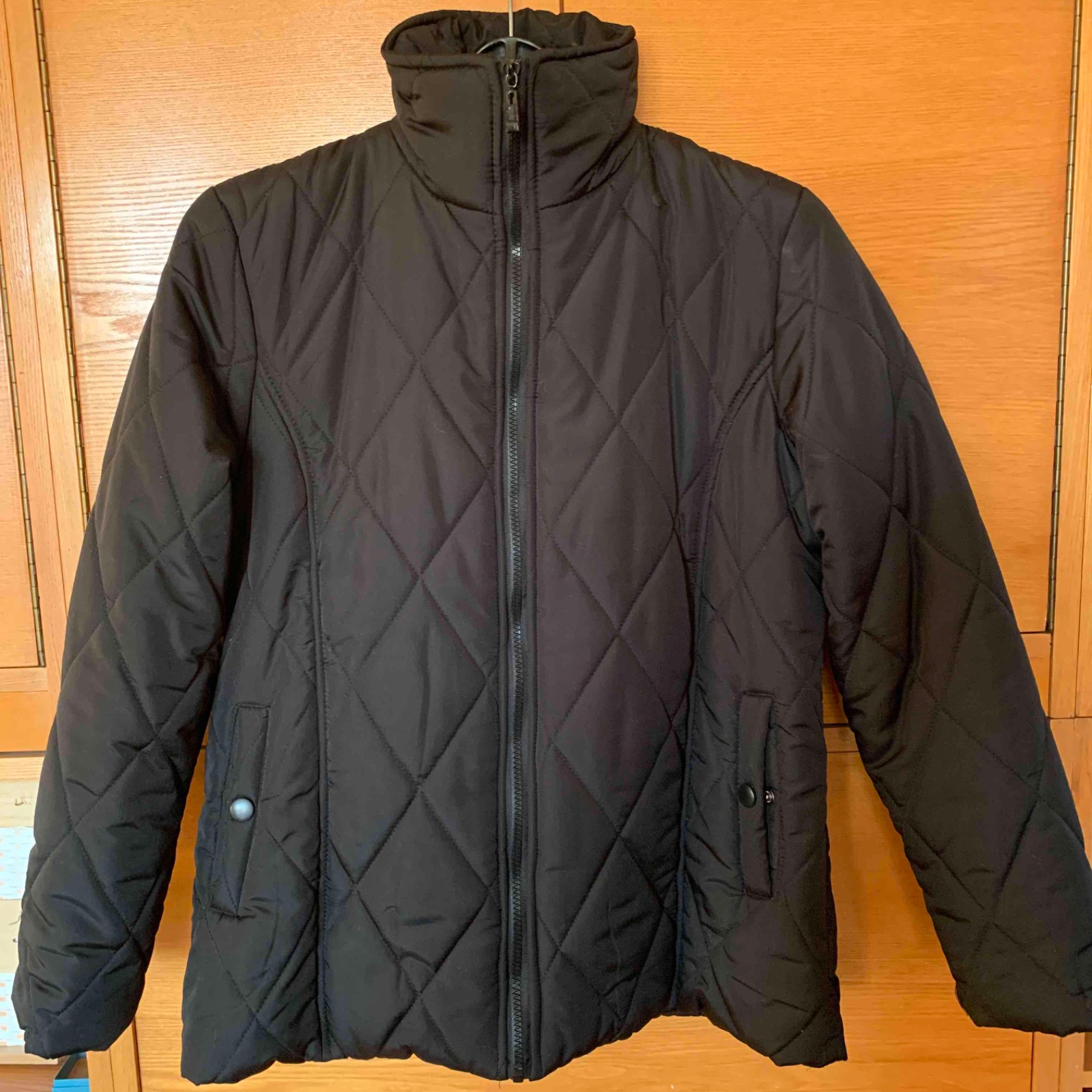 Bunda má zapínání na zip, proto je vhodná pro uvedené. Zip se zapíná až do komínového límce, má boční kapsy zapínané na druk, šířka mezi průramky -53- cm, délka 66cm, je málo nošená