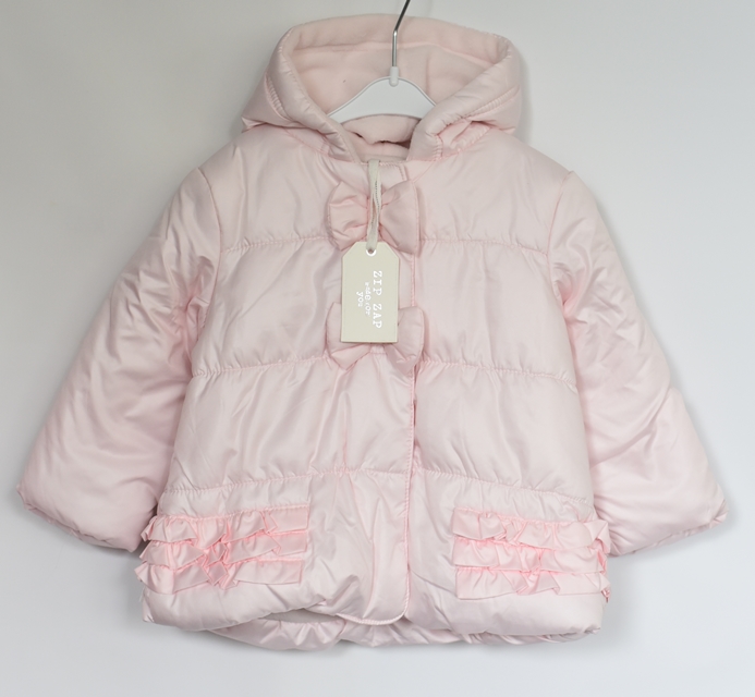 Sv. růžová zimní bunda. Podšitá flees + podšívka. Zapínání na patentky.