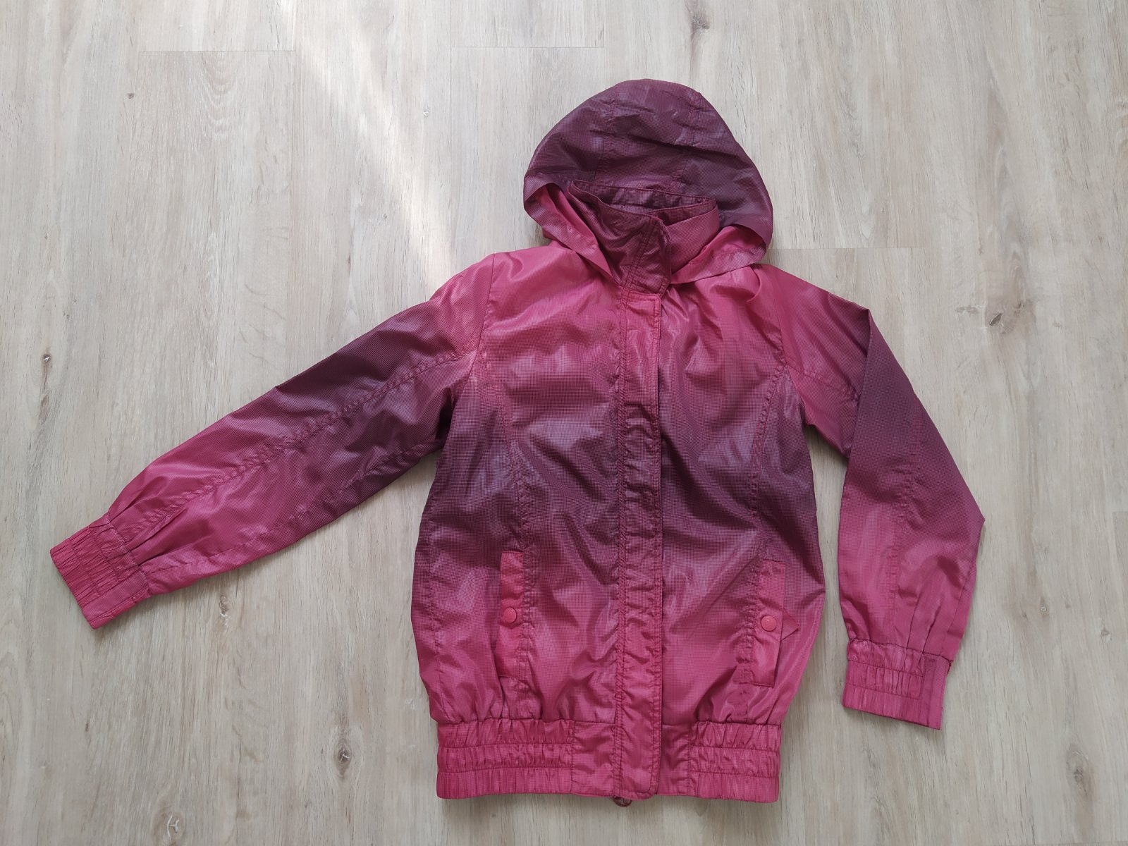 S kapucí v dobrém stavu akorát utržený druk v kapsy viz foto,ale lze opravit. Kapuci lze úkryt do límce.