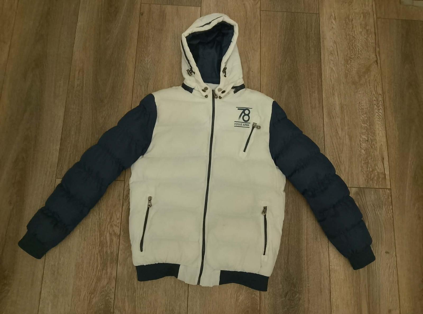 Dobrý stav (na bundě jeden hodně světlý flíček), teplá, odepínací kapuce.