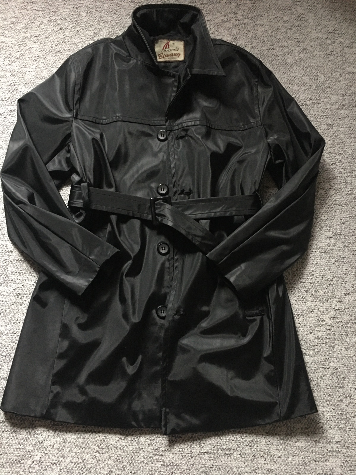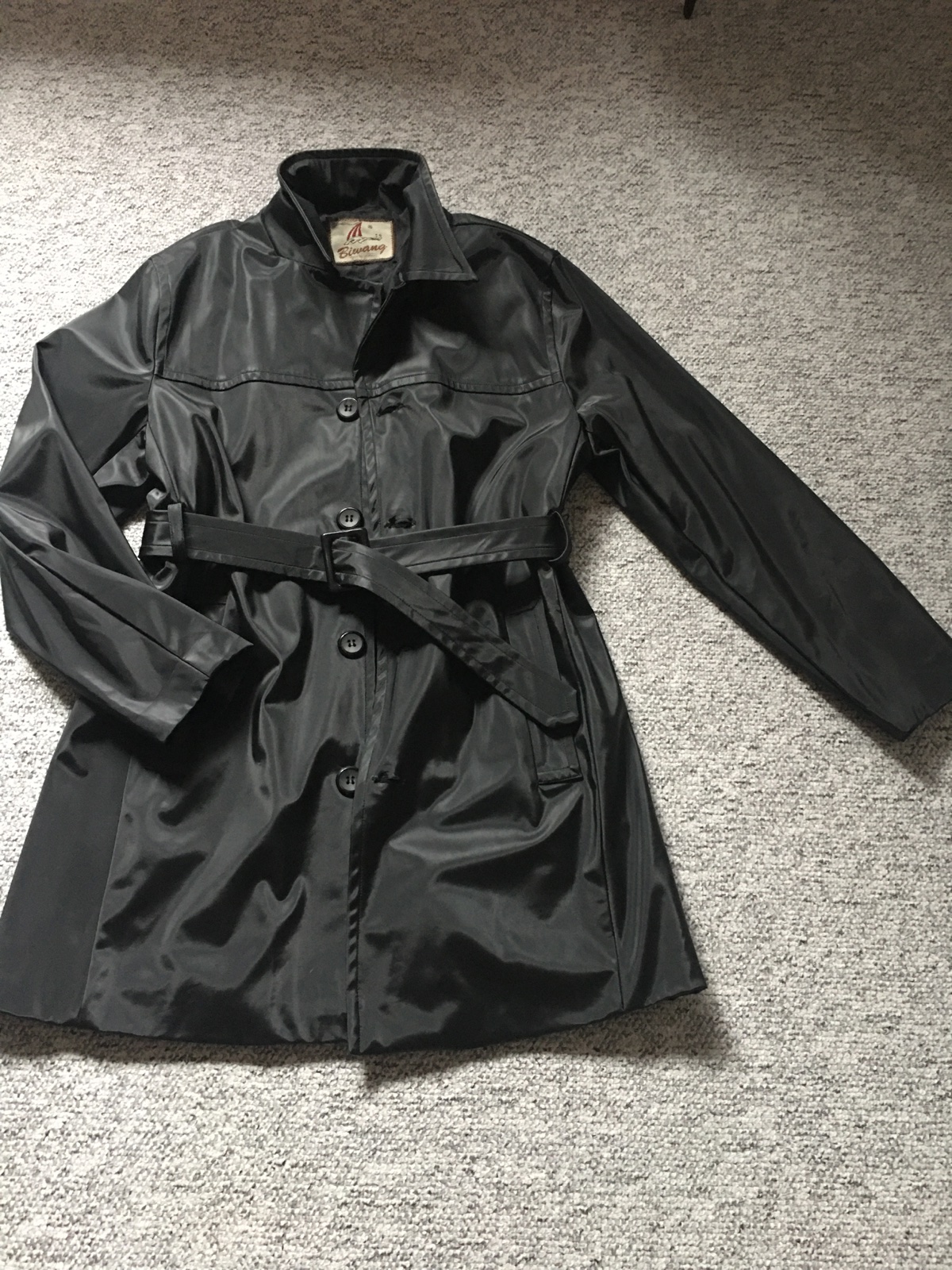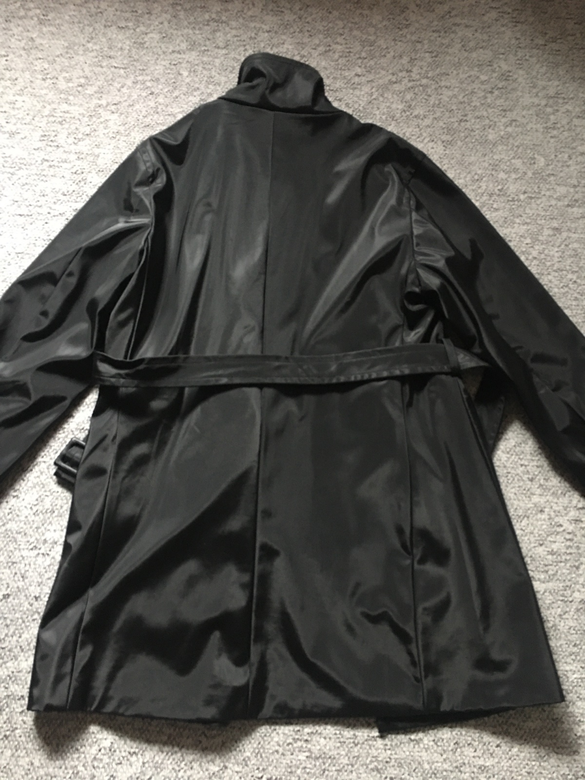 Prodám přechodových kabát.Barva černá.Kabát je nepromokavý,neprofoukne ,materiál 100%nylon.Propínací na knoflíky,2xkapsa,v pase pásek,dole rozšířený.Podšitý pes podšívkou.U krku límeček .Moc hezký stav,slušivý.