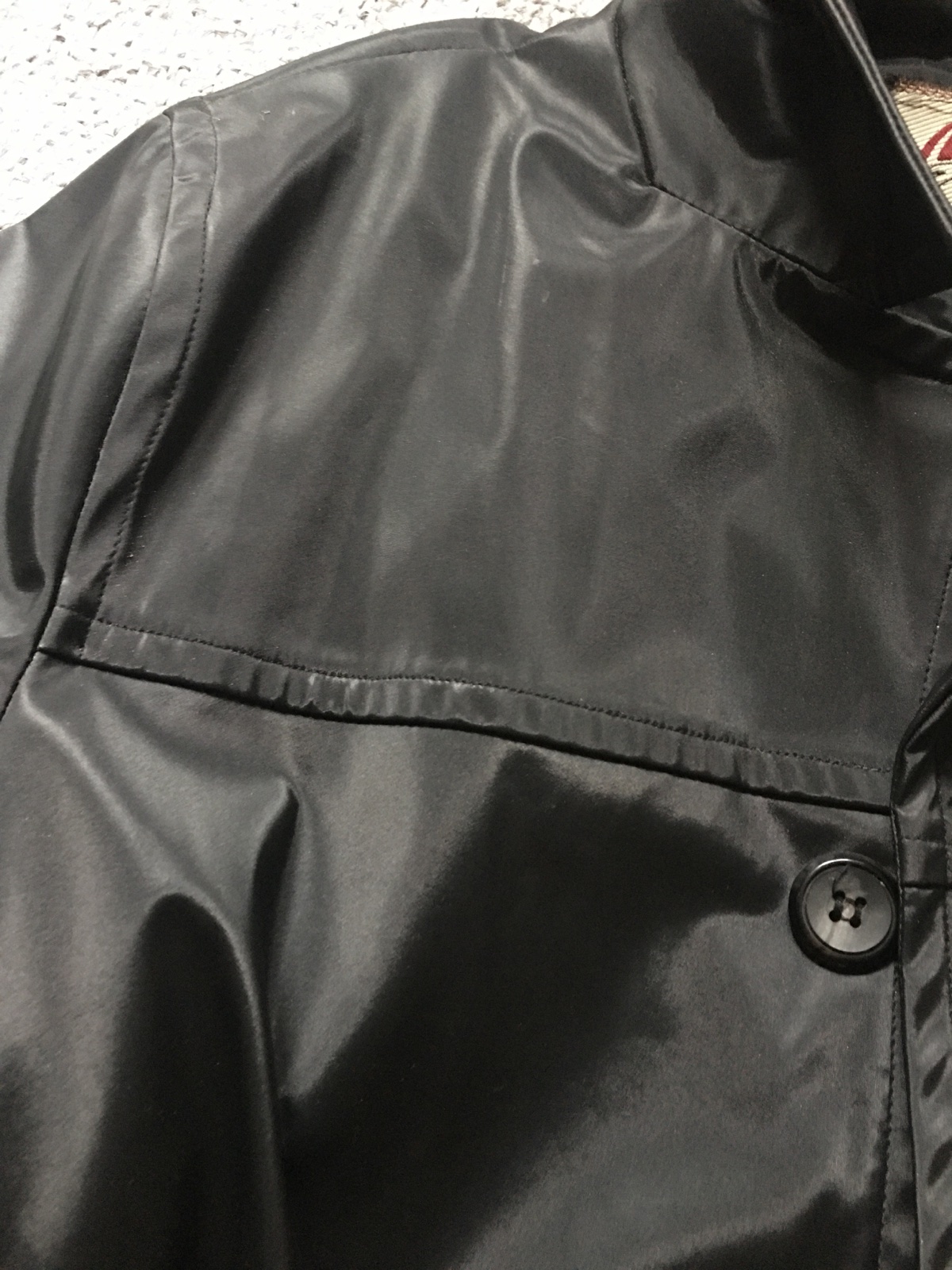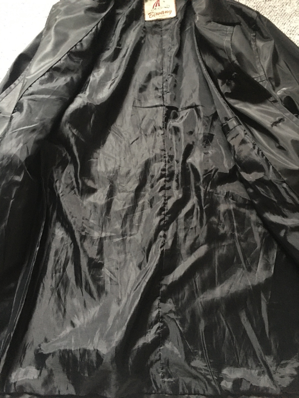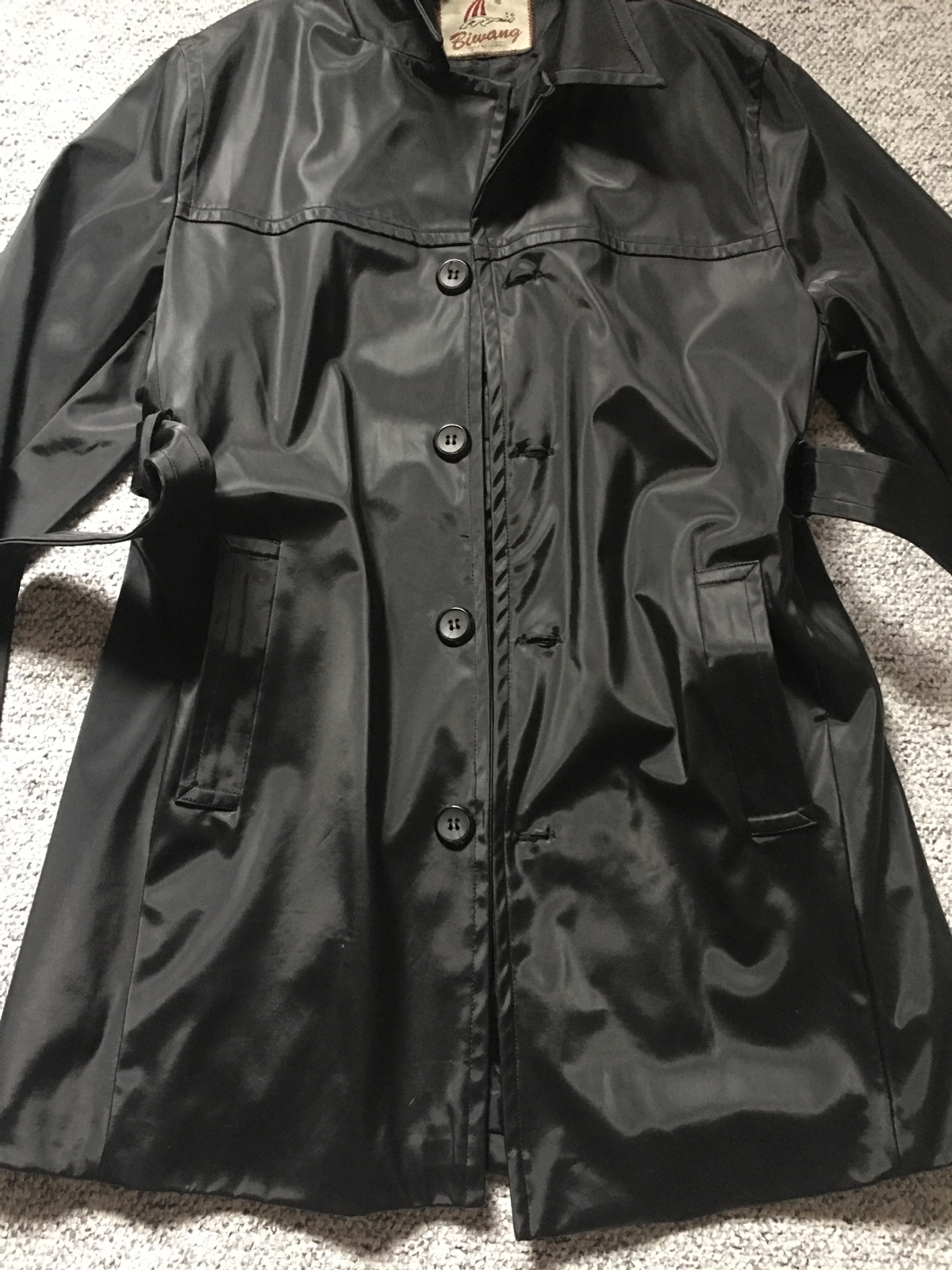 Prodám přechodových kabát.Barva černá.Kabát je nepromokavý,neprofoukne ,materiál 100%nylon.Propínací na knoflíky,2xkapsa,v pase pásek,dole rozšířený.Podšitý pes podšívkou.U krku límeček .Moc hezký stav,slušivý.