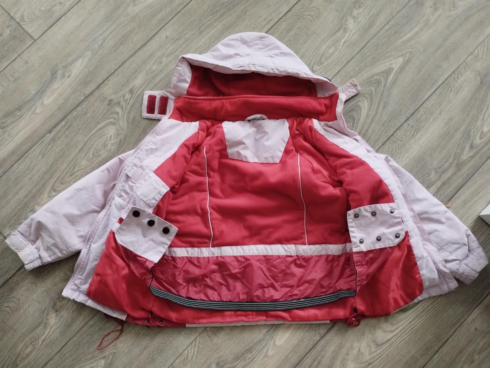 Světlonce růžová zimní bunda F&F, sněžný pás lze zapnout na 3 patentky (čtvrtý nefunguje), dvě vnější kapsy na zip, jedna vnitřní kapsa na zip a jedna síťovaná. Kapuce se dá odepnout (zip). Zip v p...