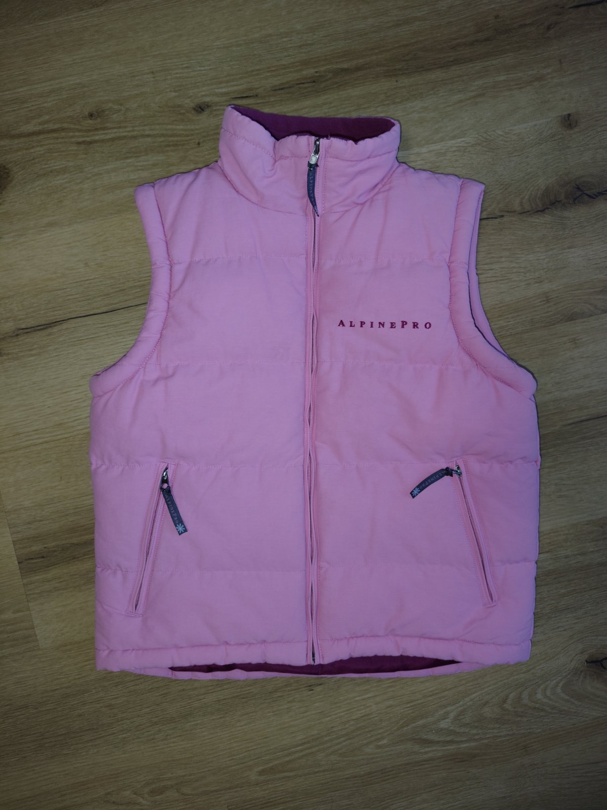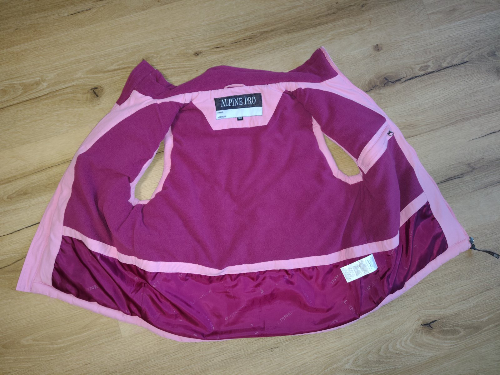 Dívčí teplá vesta Alpine Pro 152 světle růžová s fialovou (vínovou) podšívkou. Krásně teplá (na zipech symbol vločky), ve skvělém stavu jen po dceři.