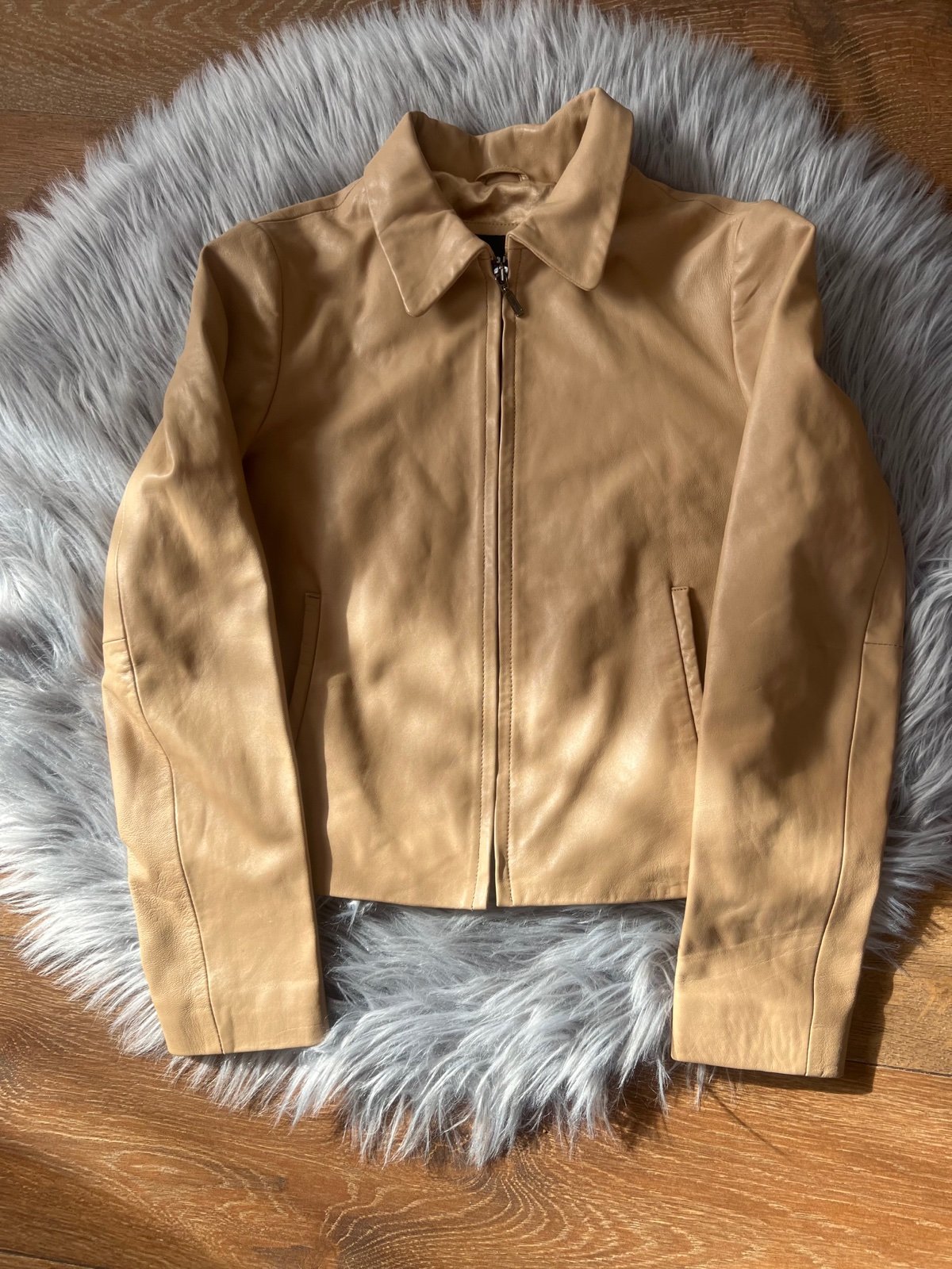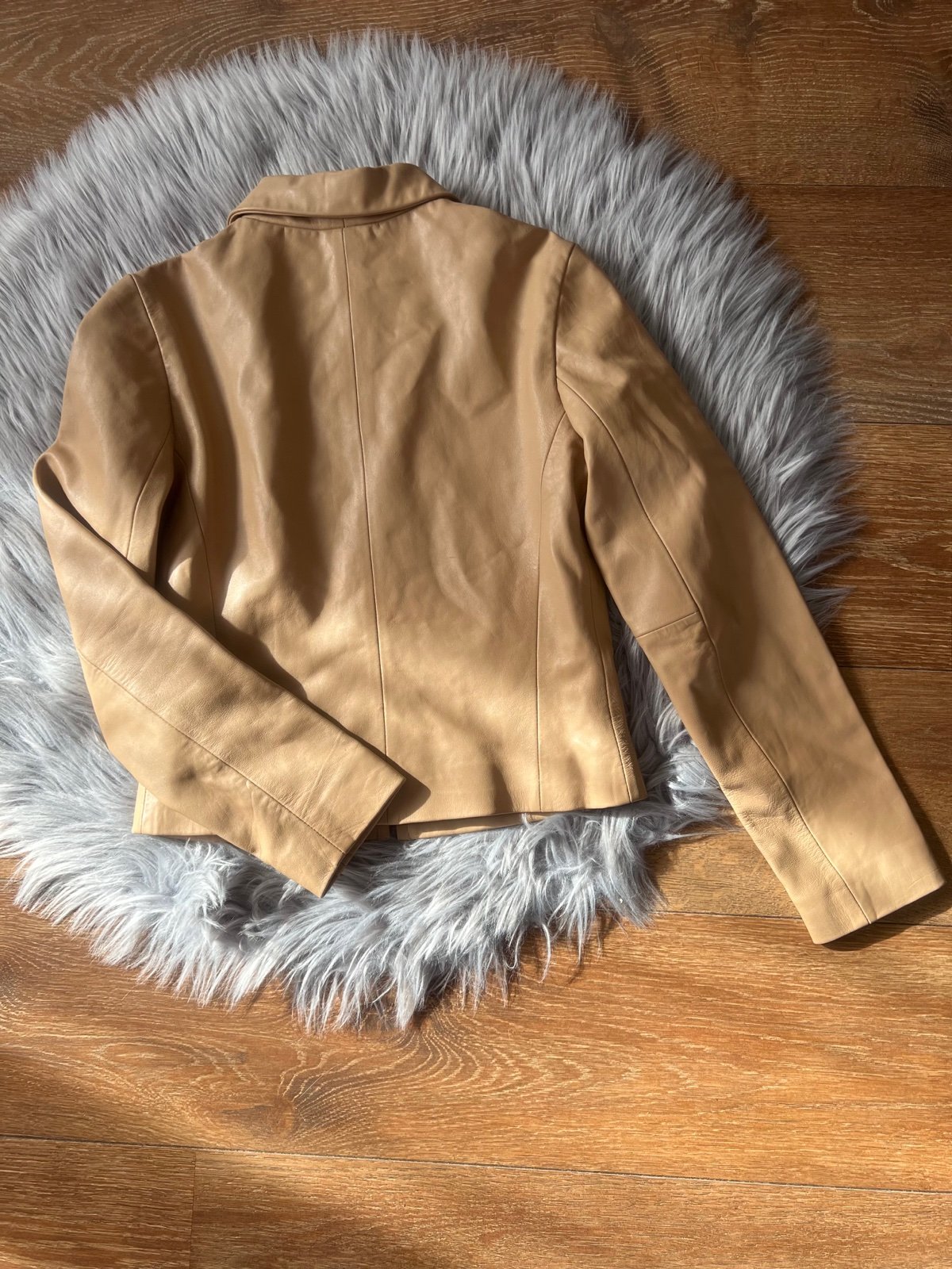 krásná, bez vad, výplň 100%, zip funkční, barva měděná z druhé strany krémová, dá se nosit oboustranně délka 65cm, šířka 55cm, rukáv od krku 74cm