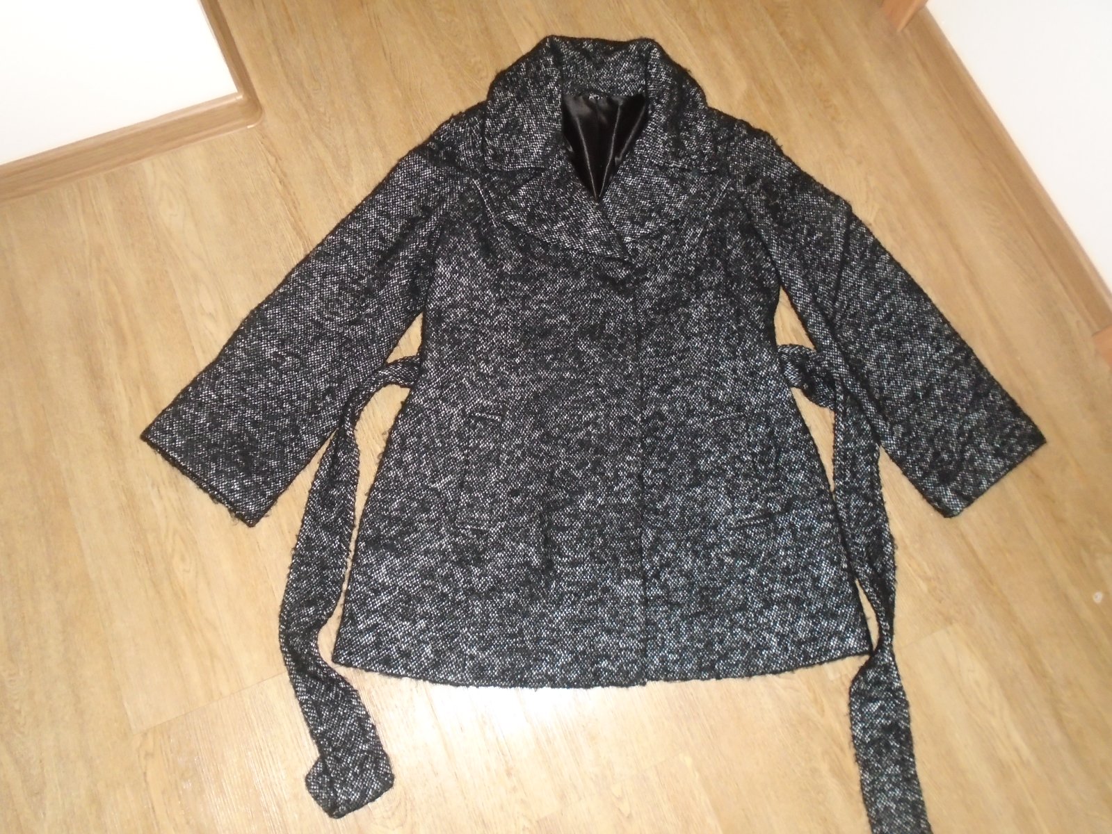 Jako nový, bez vad, minimálně nošený. Jedná se o vlnu 52% s příměsí viskózy 34% a 14% polyester. Celý podšitý klasickou lesklou podšívkovinou. Ozdobné štepování a prošitá na různých místech kabátku...