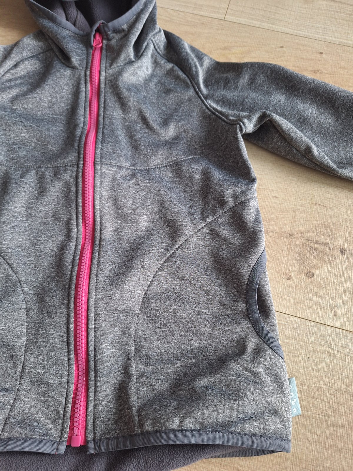 Nádherná softshelová bundička Unuo velikost 104/110. Barva žíhaná šedivá,podšitá šedým flísem. Perfektní stav. Cena 290,-kč