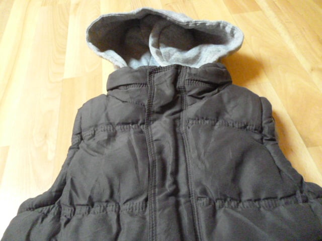 nošená, pěkná, tmavě modrá, teplá, vzadu zataženina a dojde mi, že neni úplně rovnoměrná náplň, ale pořád se hodně unosí, kapuce nejde odepnout, délka je 46 cm, vzadu 48 cm, šířka průramky 2x42 cm, psaná vel. 7-8 zn.Rebel