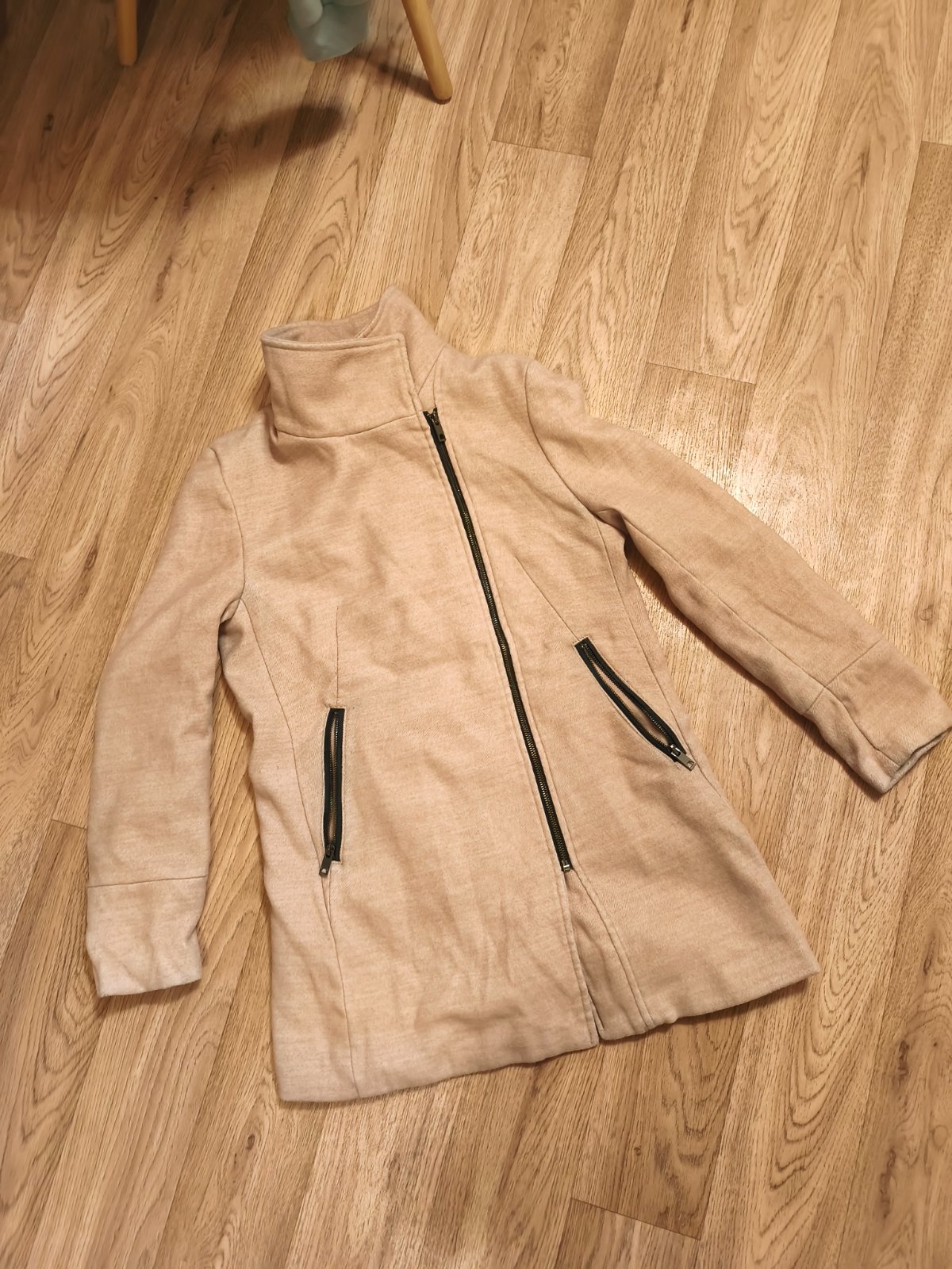 Jarní kabátek Bershka M, sedí spíš S, měřte. Žmolky hlavně vzadu.