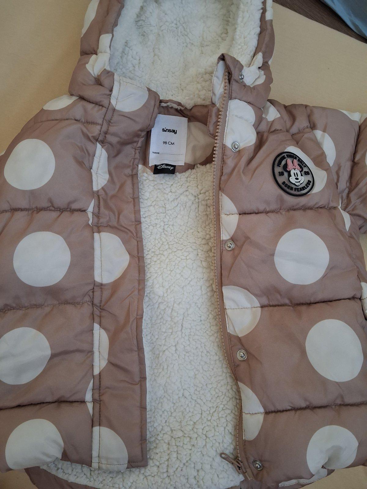 pěkná, velmi teplá zimní bunda, lesklá, uvnitř růžová chlupatka, F&F, vel. 2-3roky