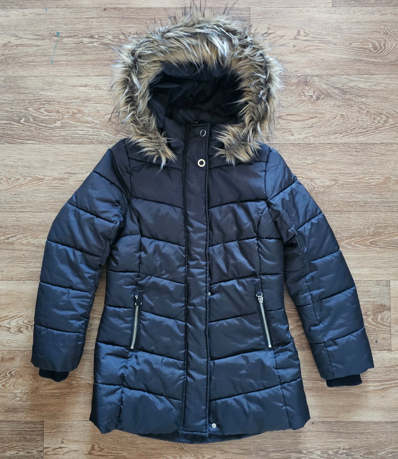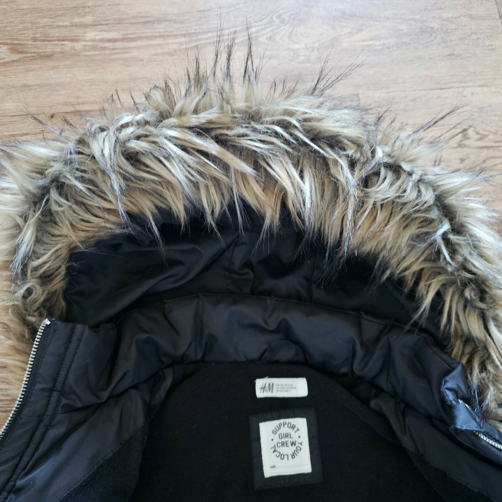 Krásná, teploučká. Stav 10/10. Kapuce je odepínací, kožíšek na pevnou. Zipy kovové, takže se nijak nekrčí. Podšívka fleece /klouzavá.