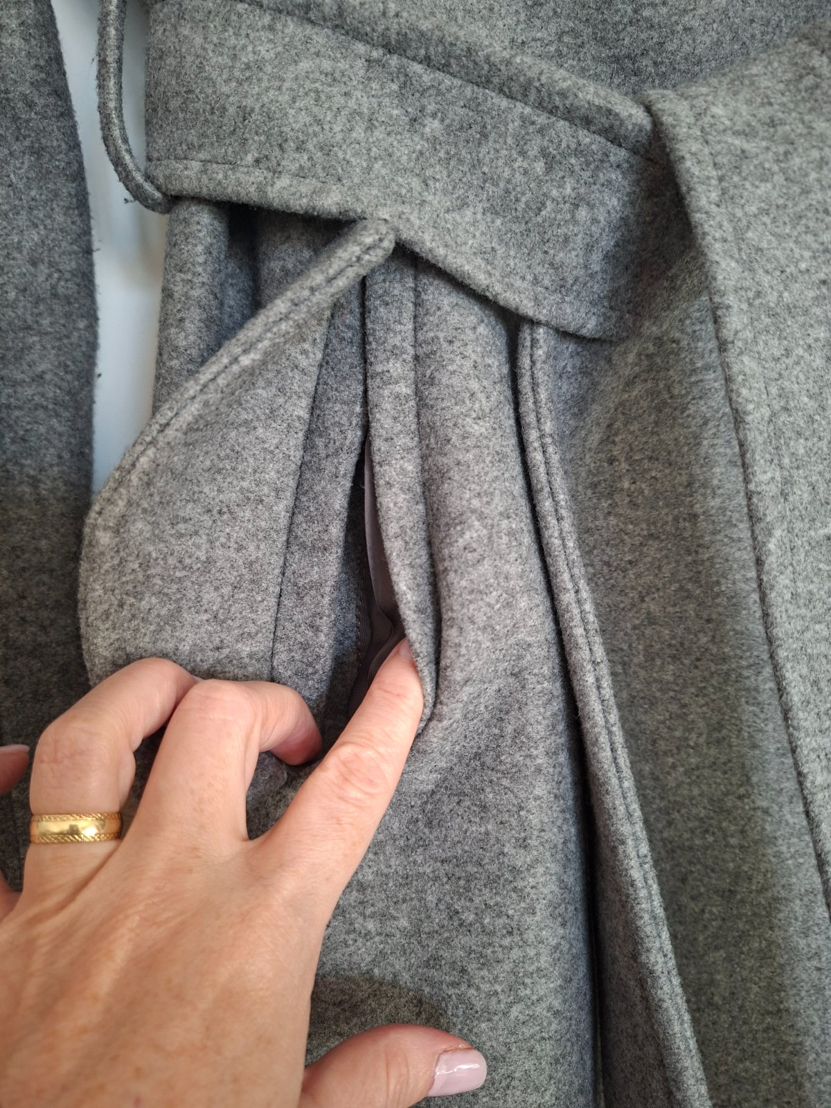 Novy zimni dlouhý kabat, pouze doma vyzkoušený. Materiál je prijemne pruzny, není tvrdý