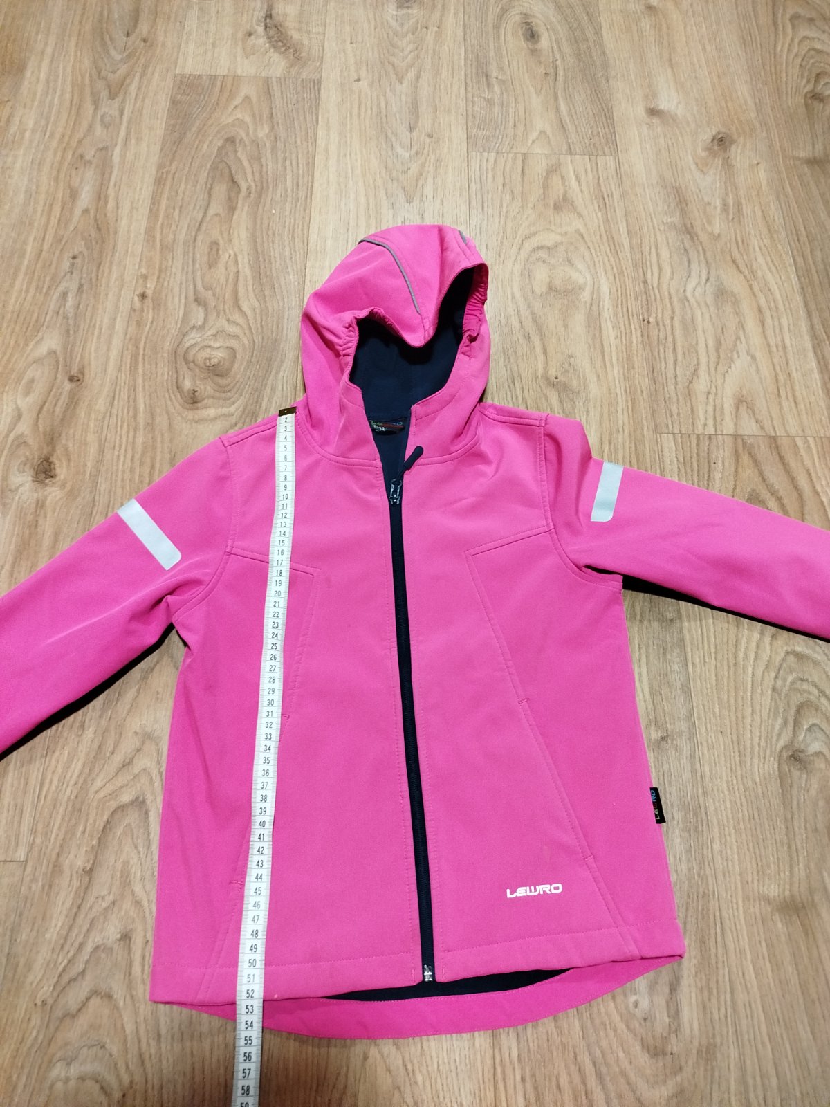 Rozměry jsou na fotkách. Bunda byla kupovaná nová, ale často nošená. Jsou na ní menší fleky, které by mohly být trochu vidět v detailu fotek (přední levá strana a rukáv), proto snižují cenu. Zipy jsou funkční. Reflexní prvky.