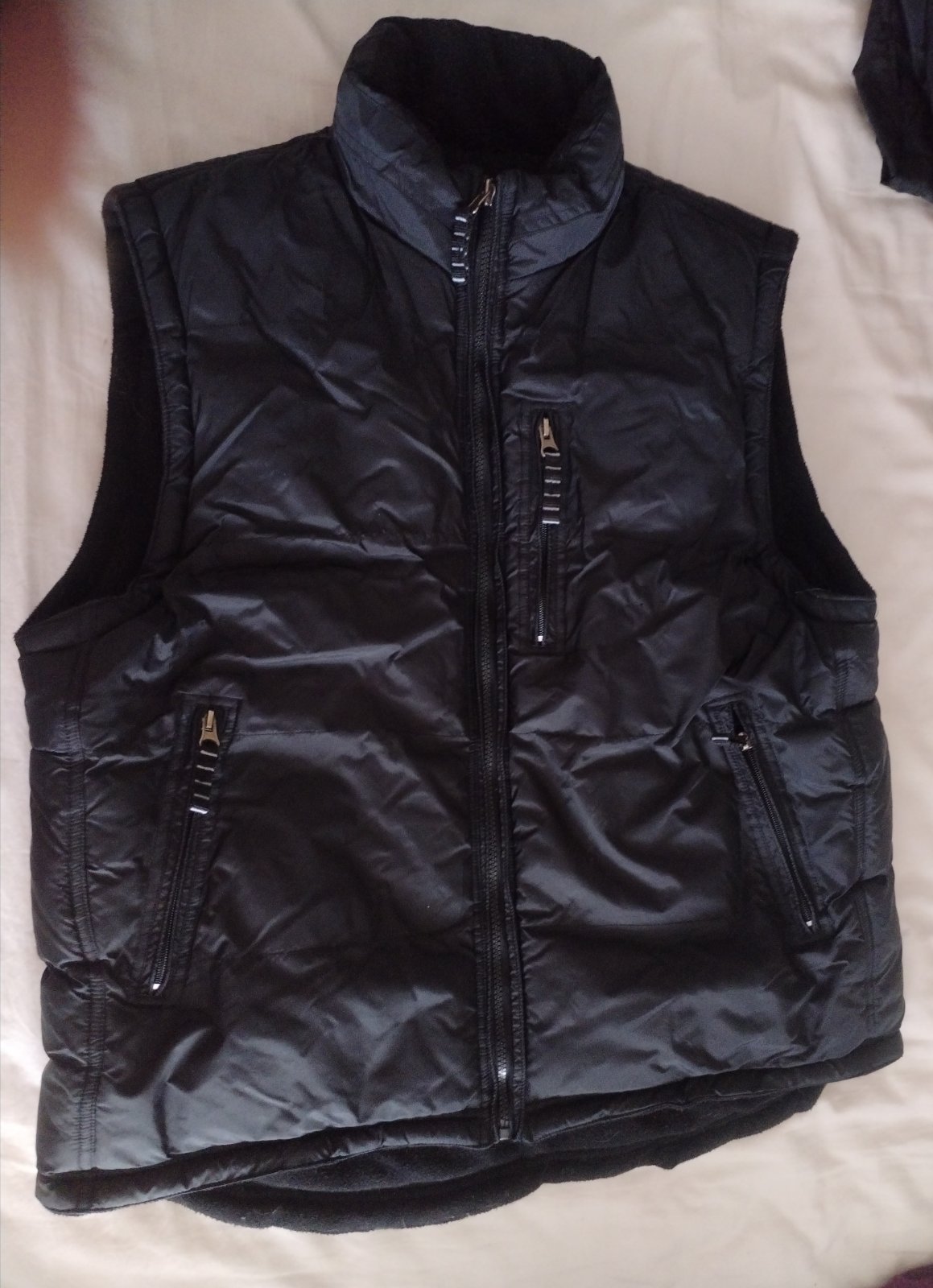 Kvalitní a super teplá vesta. Asi použítá ale top stav. Na svetr nebo mikinu určitě poslouží už na předjaří,chladnější jaro + podzim. Barva je sytě černá , kvalitní vysoko gramážní šusťák co neprofoukne a je vodě odolný. Perfektně vydetailovaná a propracovaná s kapsama na zipy.. Délka 68cm zadní díl je prodloužený na 75cm, prsa-hrudník do max.115cm,břicho do max.115cm,ale počítejte cca.-2cm s něčím podvlečený (mikina-svetr), boky max.120cm. Psaná vel.L a myslím že odpovídá-prosím měřte.. U nás úplně nevyužitá. V případě zájmu nakoukněte , je tu toho mnohem víc a třeba vám v ceně jednoho poštovného 150,- padne ještě něco do oka a využijeme ho na 100% a při odběru nad 1000,- pošta zcela GRÁTIS..!! Zásilkovna je doprava za 80,-