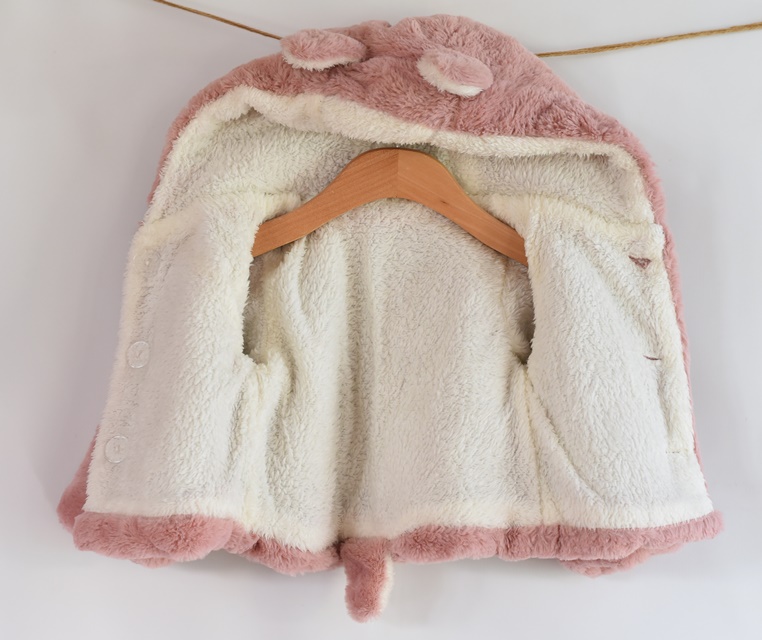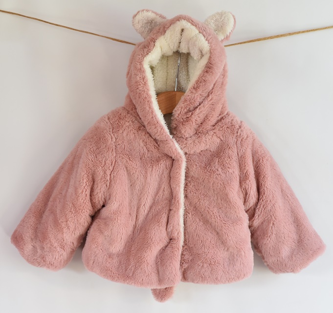 Růžový kabáte, chlupatý.