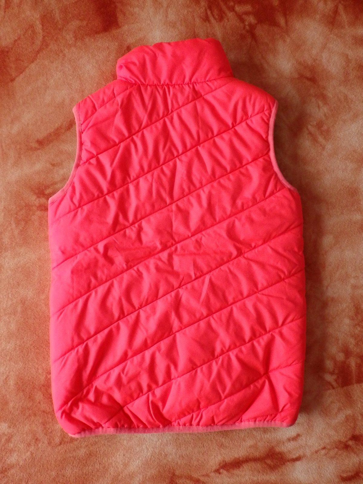 Krásná oranžovo-růžová zateplená vesta, dvě kapsy, pěkný stav.