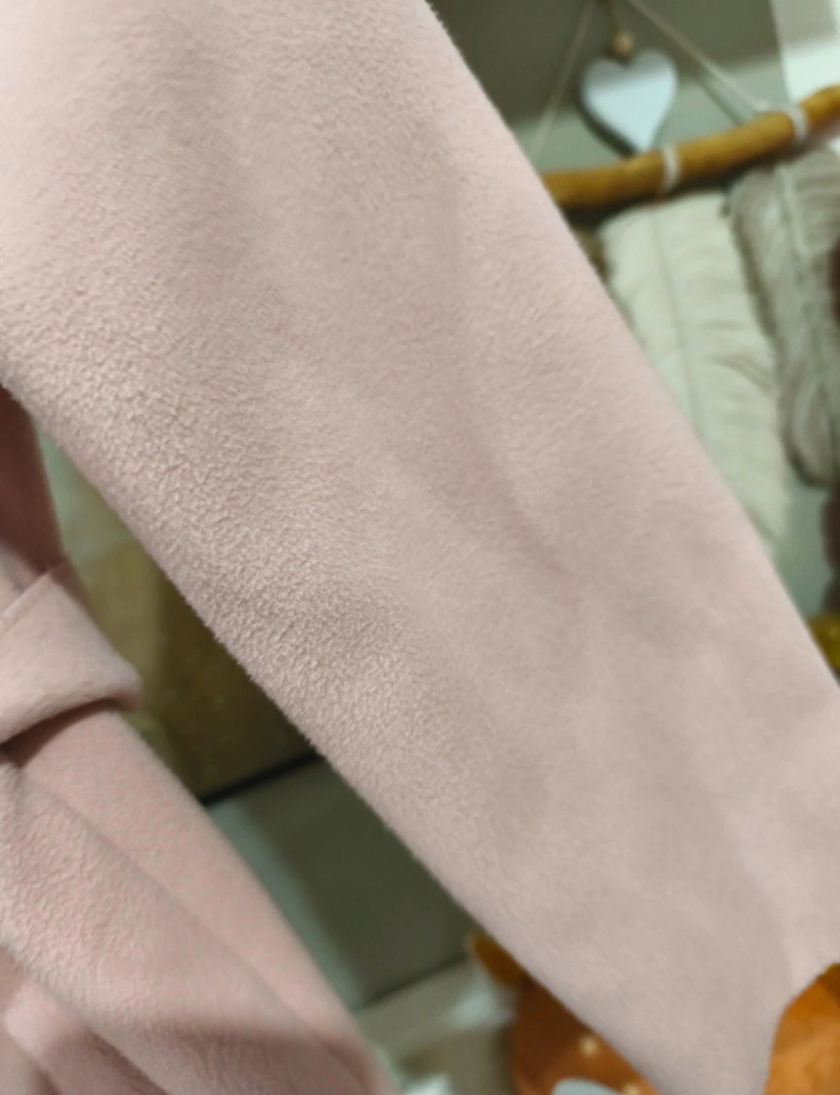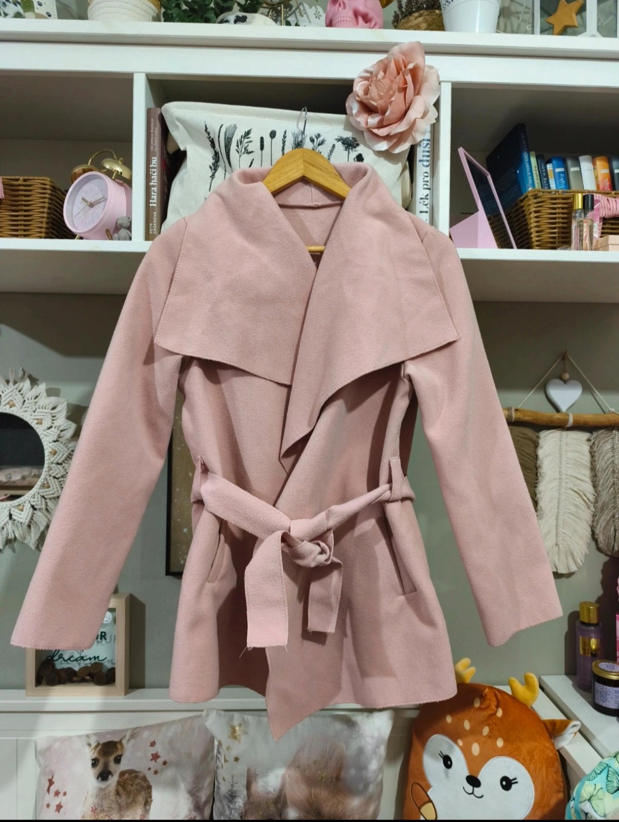 Kabátek na jaro, uni vel XS-M, běžné známky praní, takový chloupek, ale tento materiál tak vypadá i normálně. Jedinou vadou je, že je malinko povolený v podpaží, ale to jsem si všimla až při focení, při nošení není znát nebo stačí malinko stáhnout. Zohledňuji v ceně