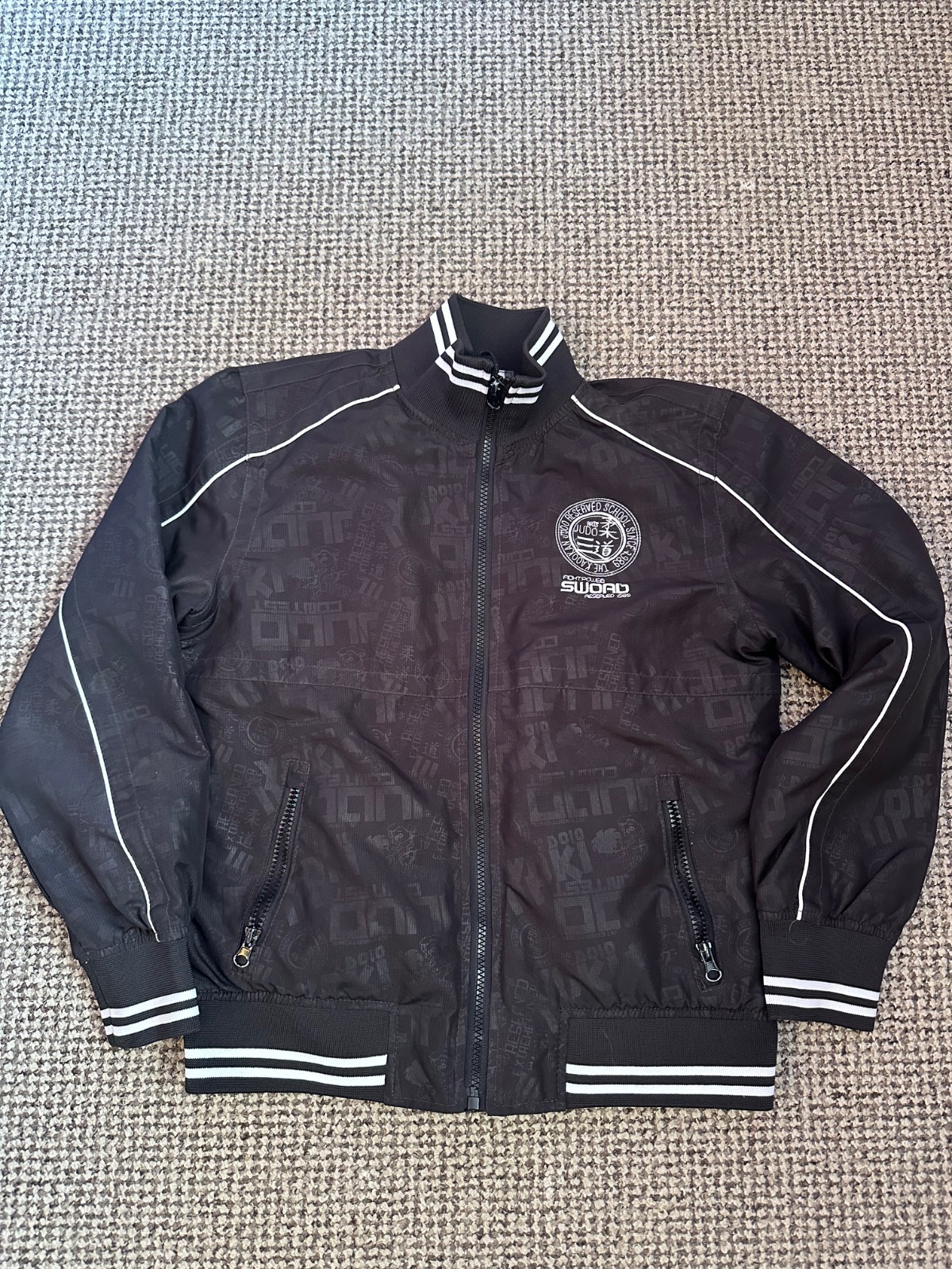 vel. 158-170, 13-15 let bunda je zašívaná dole u kapsya a u lokte a aplikace na prsou je odřená, jinak ok, na lítačku ještě poslouží záda 67, rukáv 68cm