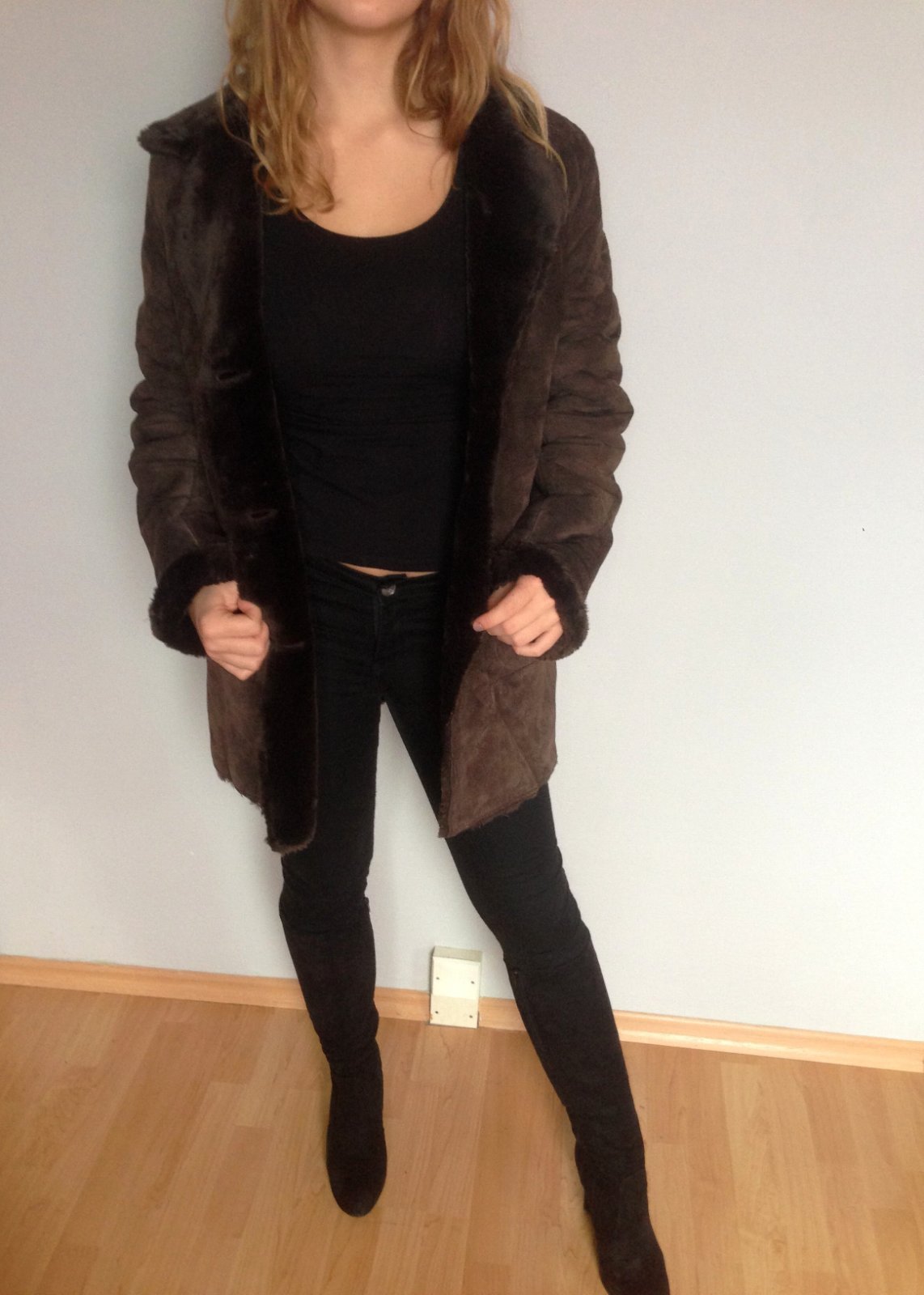 Velmi teplý kožíšek z pravé kůže rovného střihu v super stavu.