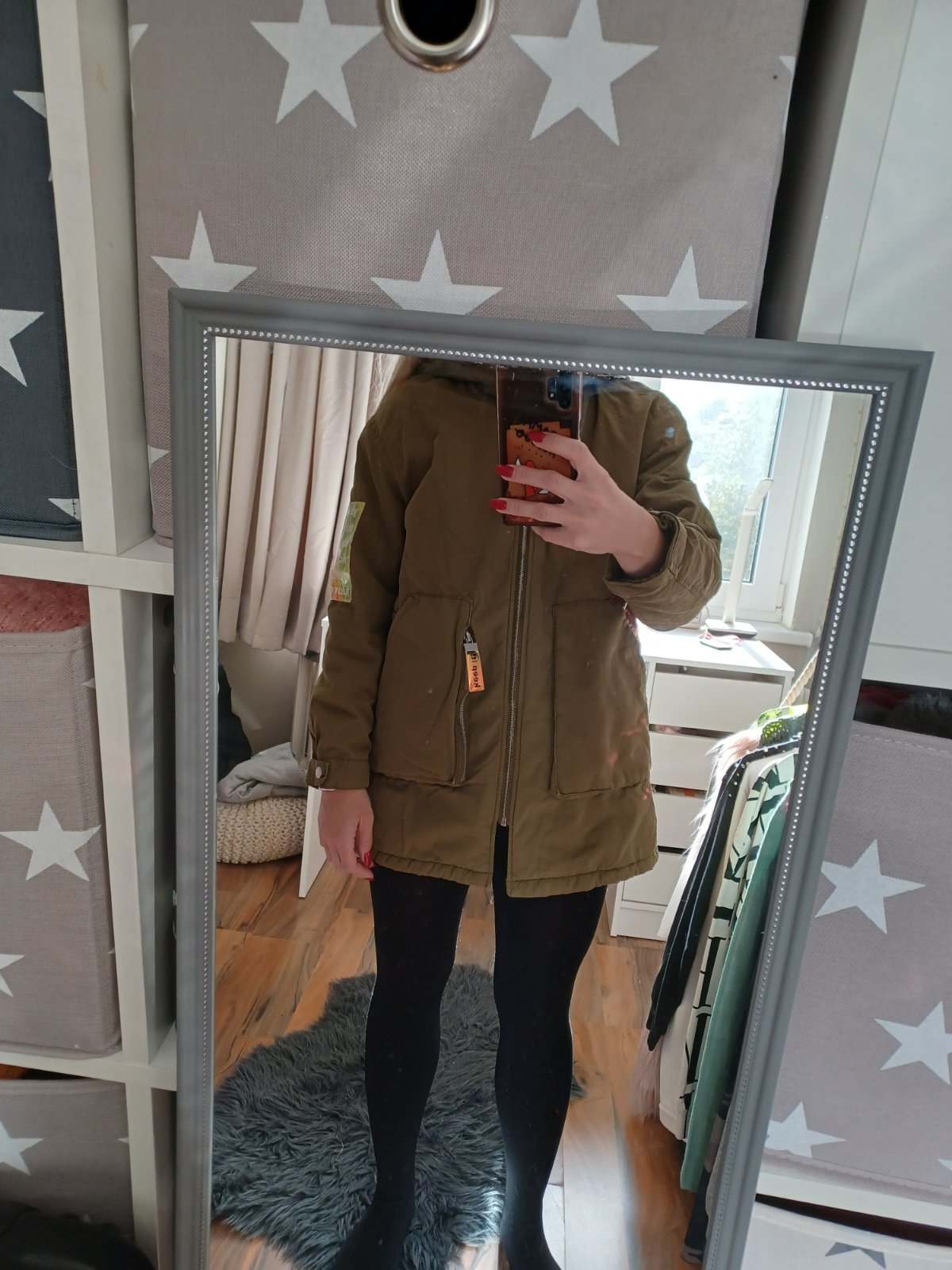 Zimní bunda oversize, khaki parka Zara 164/XS-M