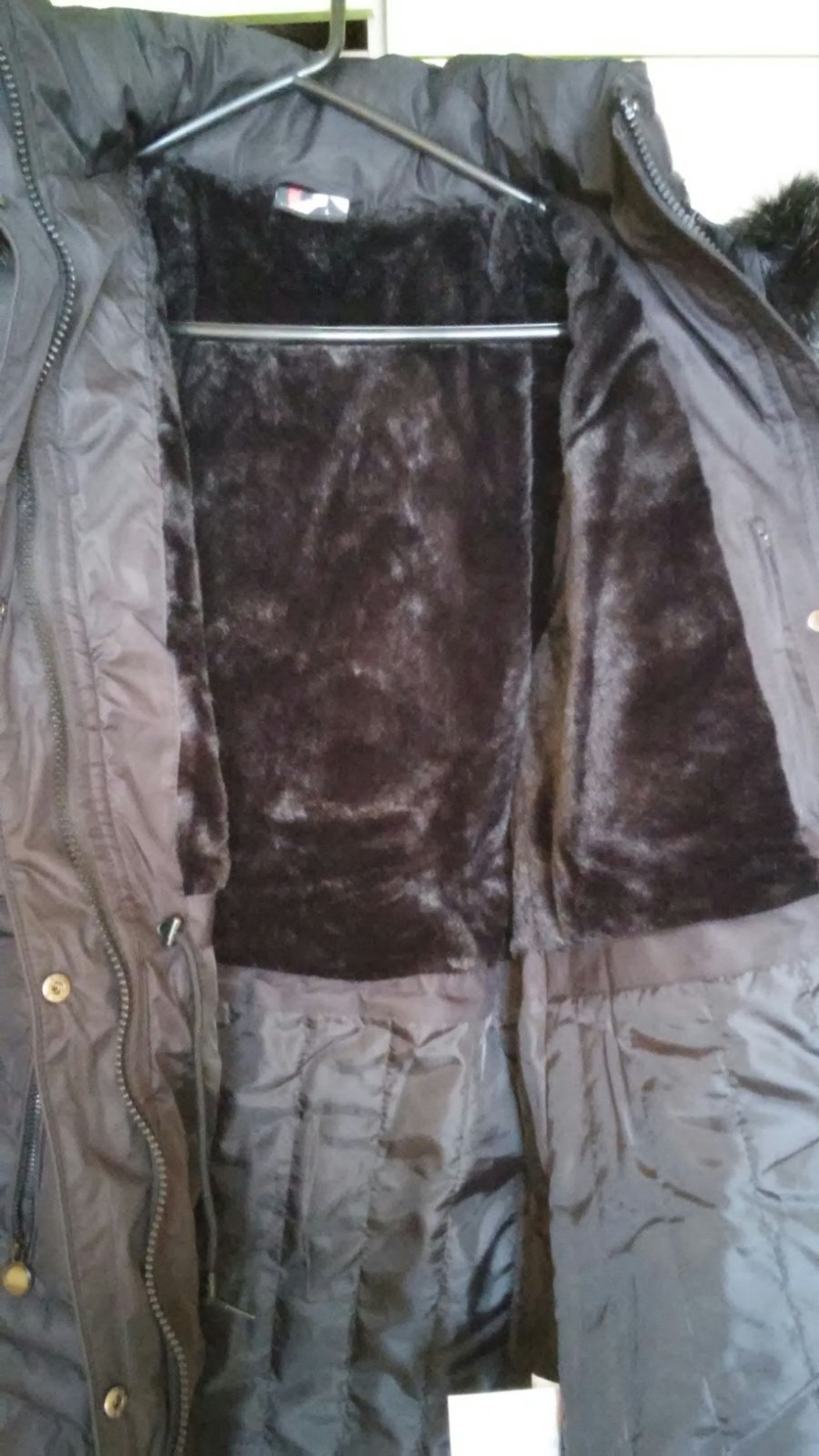 Velmi teplý, barva černá, mírně projmutý střih, v horní části bundy a v kapuci je kožíšek, větruvzdorný, odnímatelná umělá kožešina