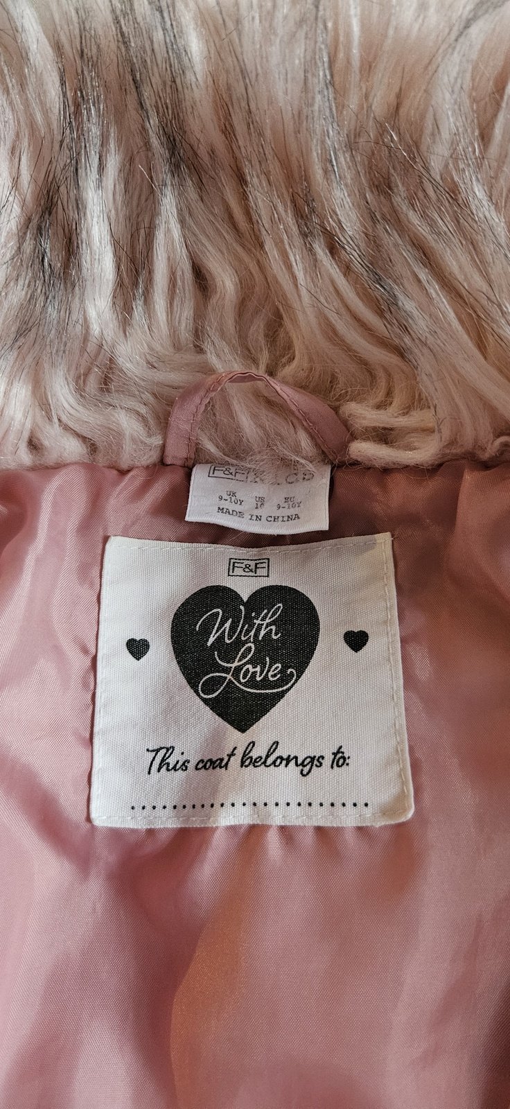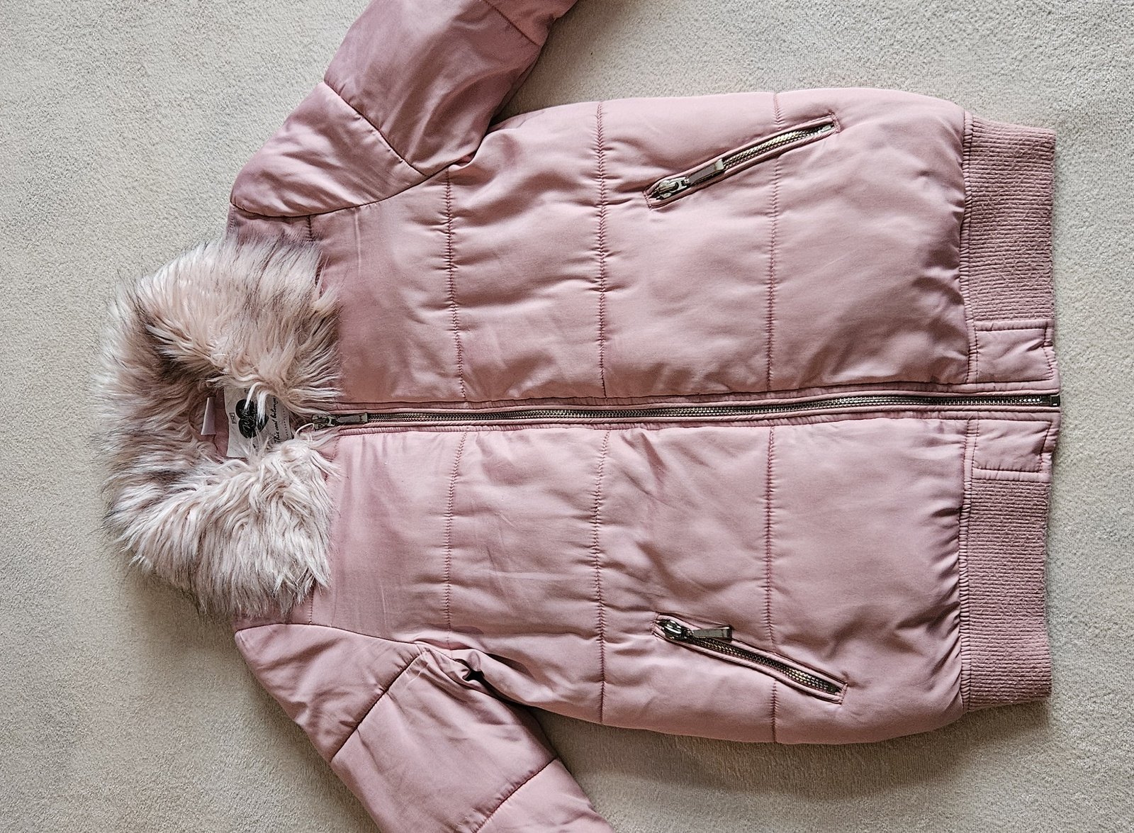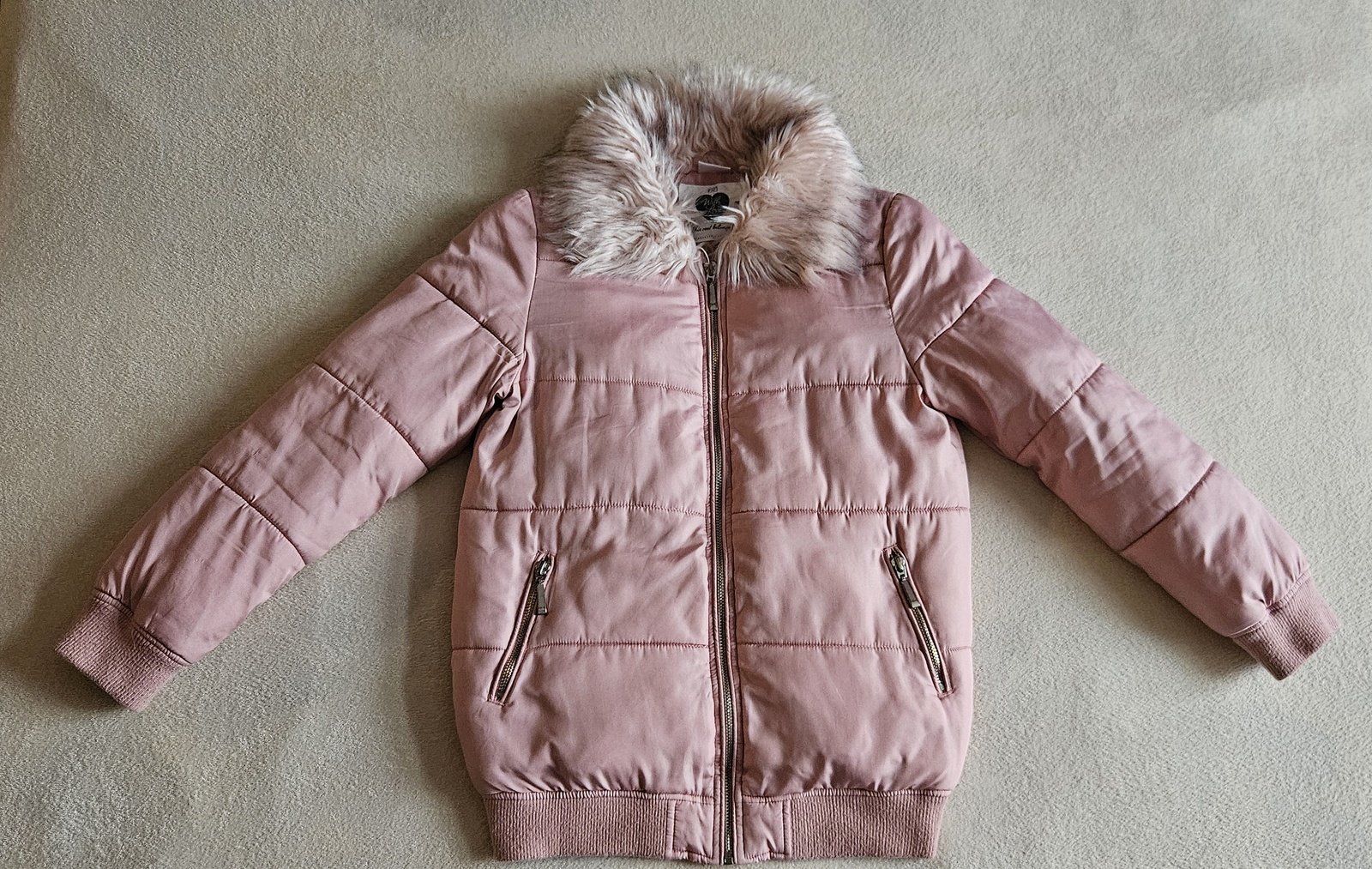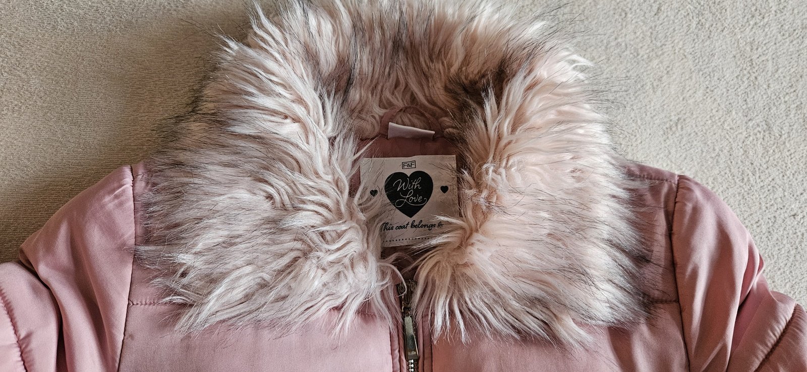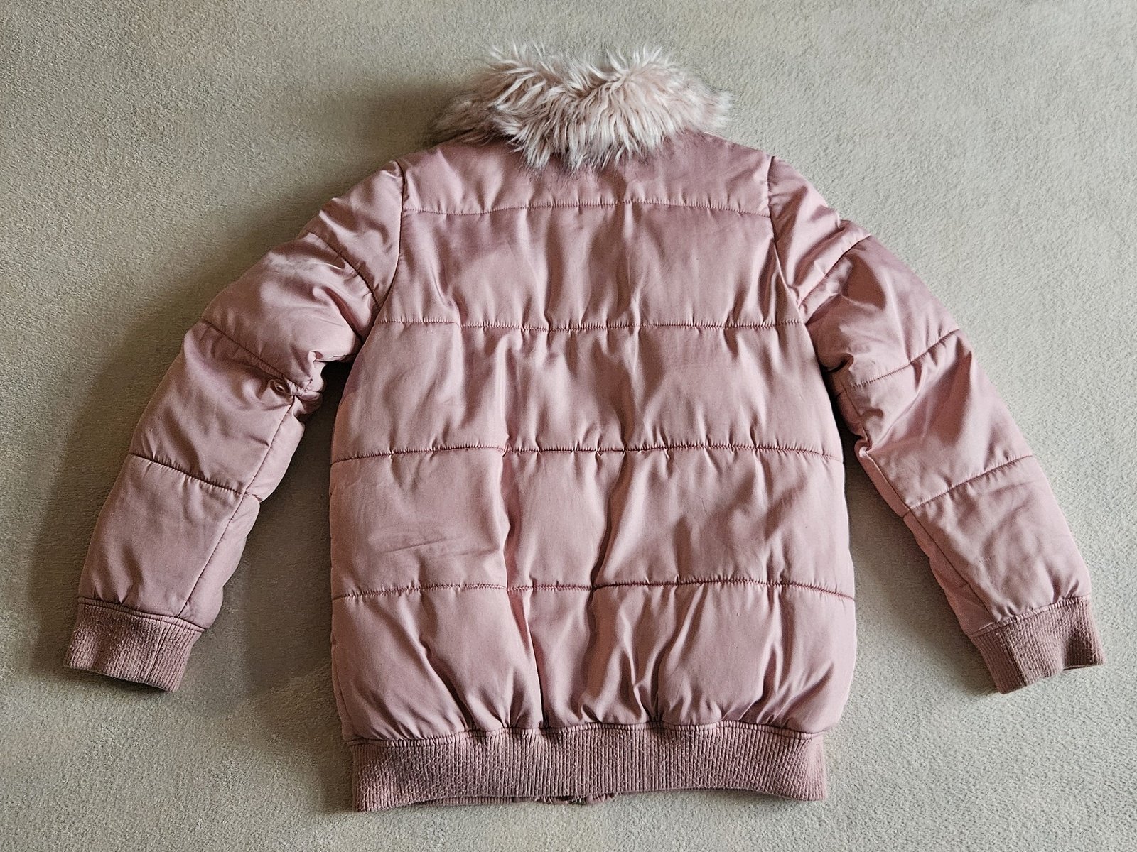 Dívčí růžová zimní bunda s kožíškem, vel.140, F&F