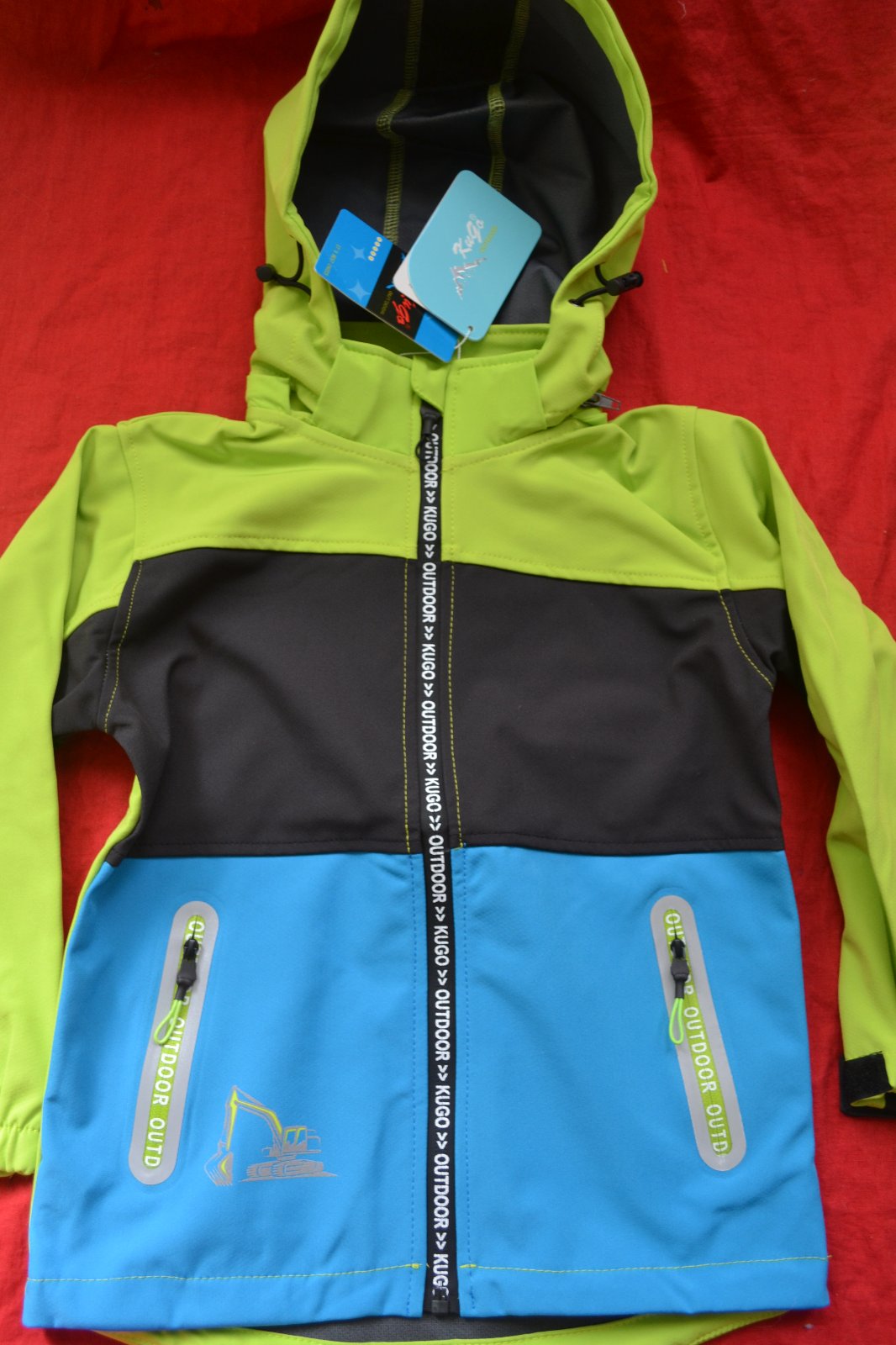 vkusná kvalitní nová softshellová bunda Kugo,osvědčený výrobek,kapuca,kapsy,rukávy na stažení na suchý zip,dobrý střih,je to vel.104 ,ale odpovídá 110...odpovídá na 3,5-4,5r, délka 49/52cm,rukáv od krku 48cm
