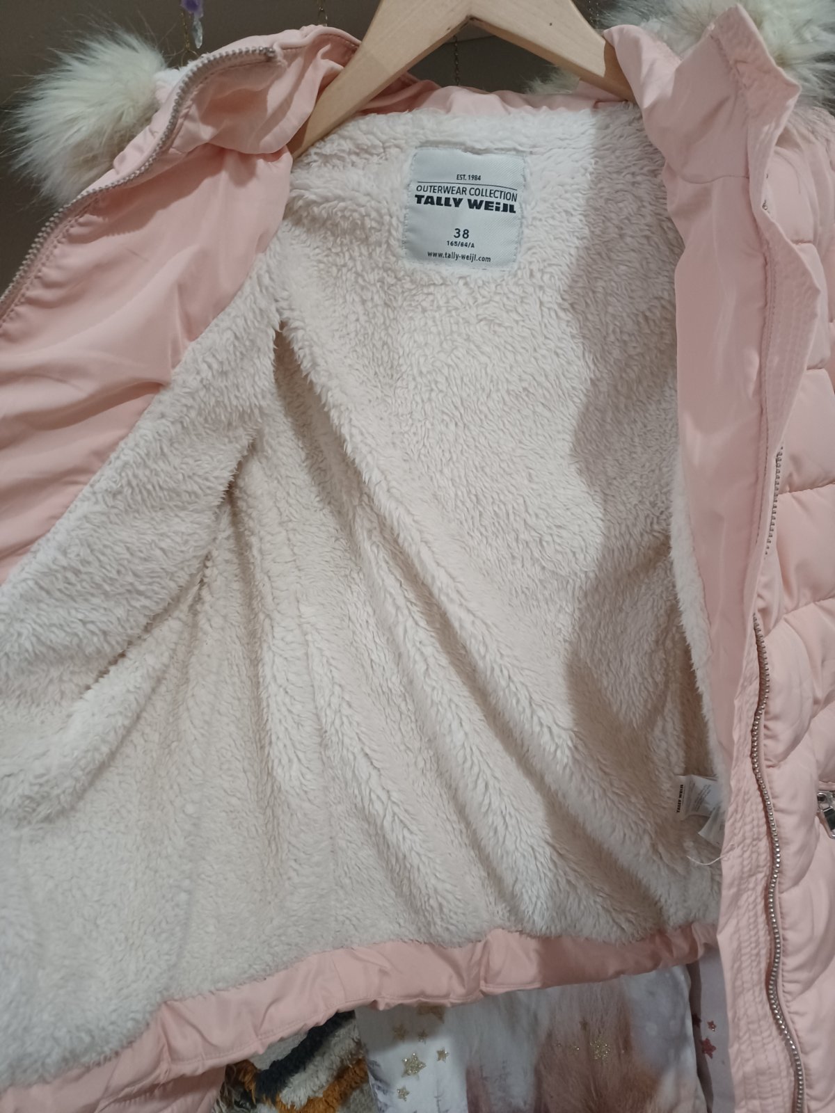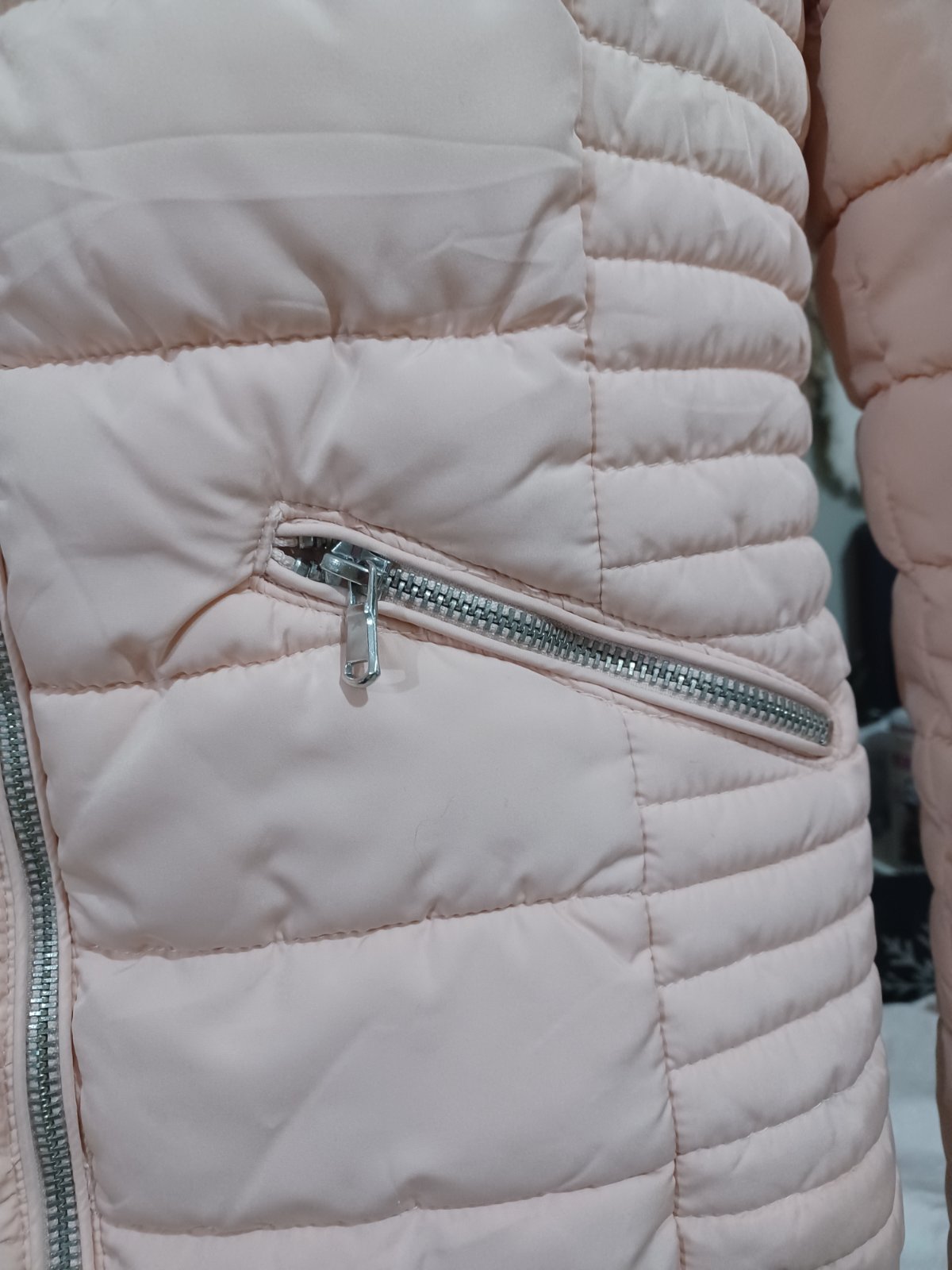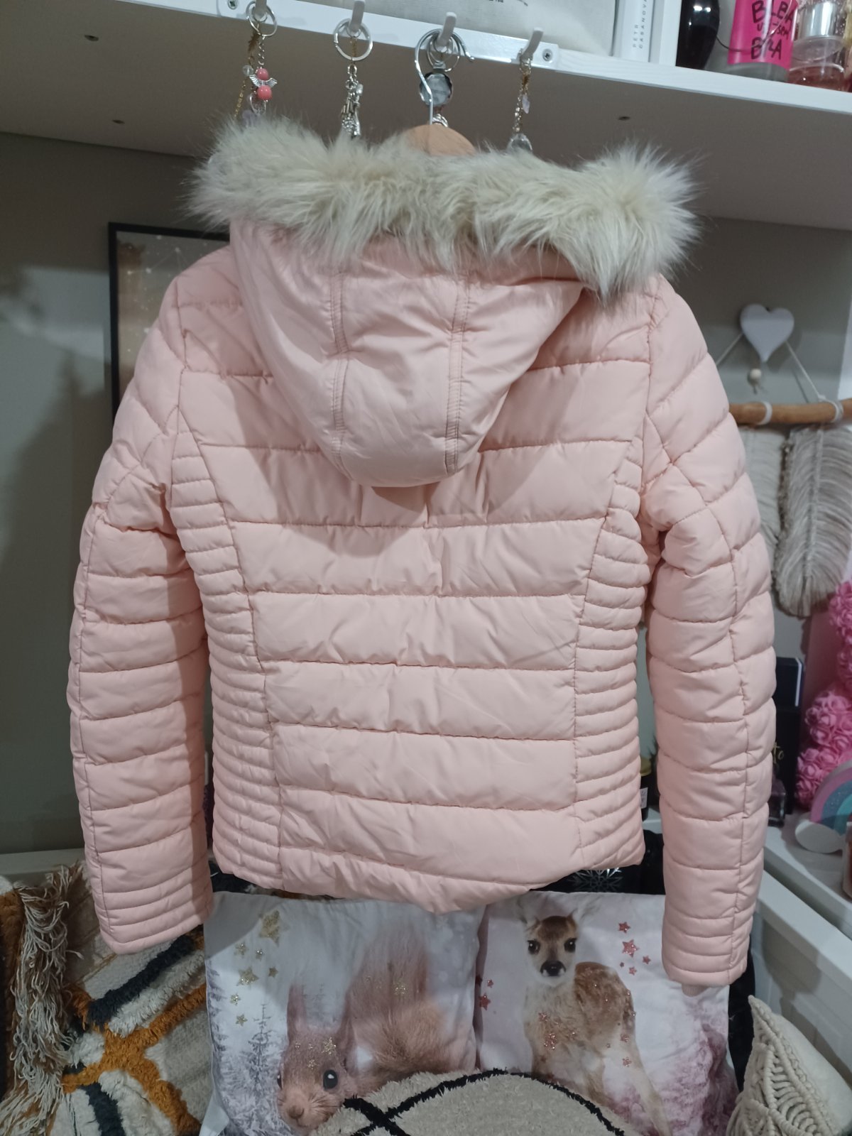 Krásná pudrově růžová bunda, vel M, nošená při XS / 158. Běžné známky praní.