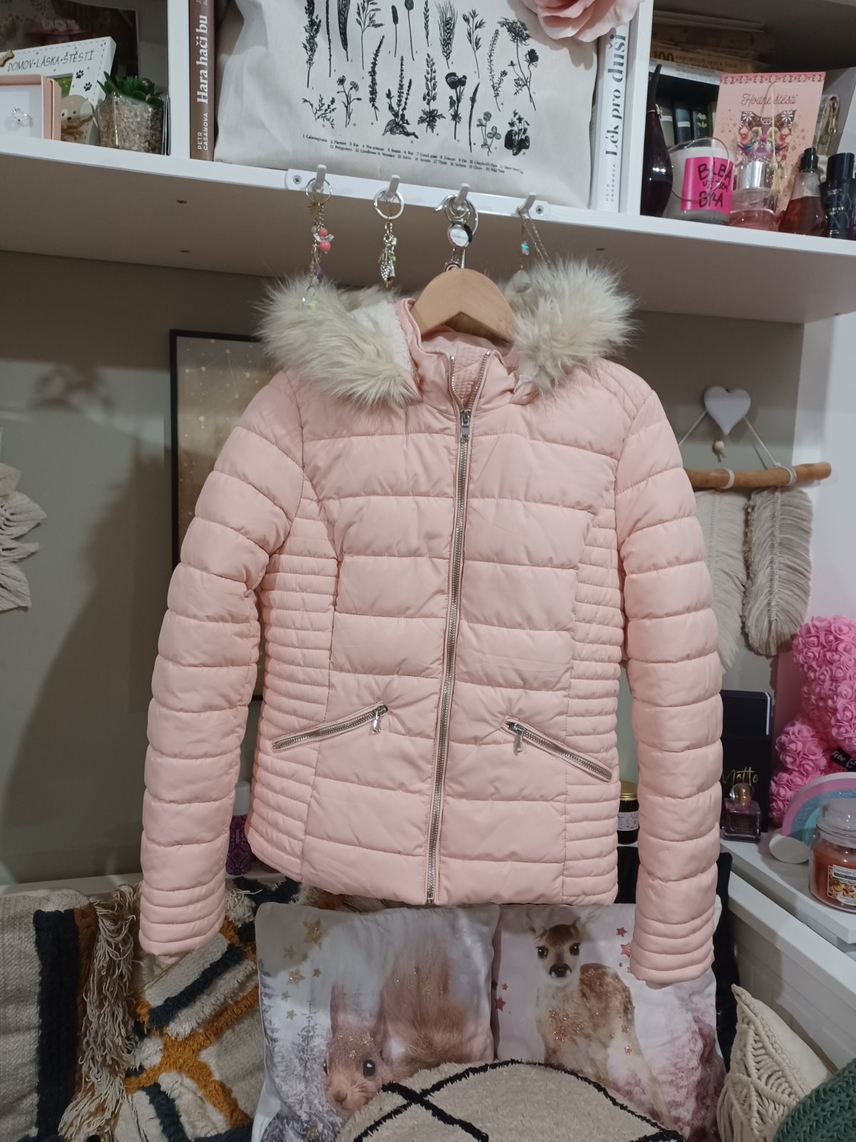 Světle růžová zimní bunda s plyšem uvnitř