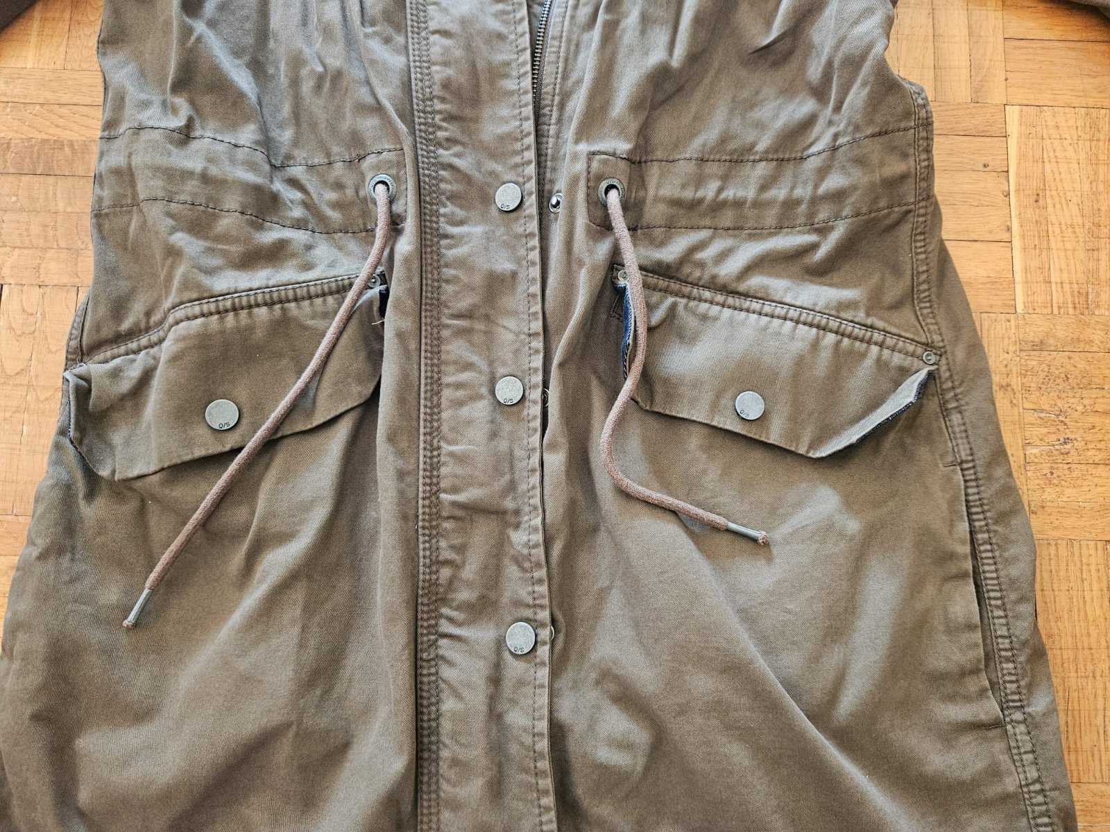 Málo nošená, bez vad, délka od ramene 49 cm, přes hrudník 45 cm, délka rukávu 58cm.