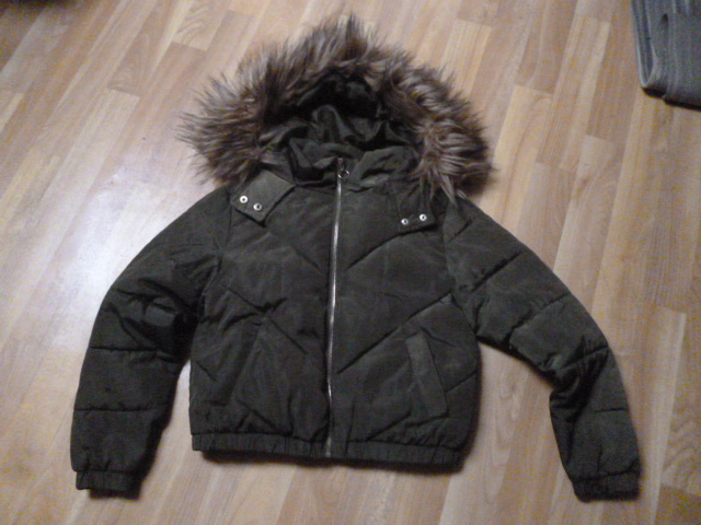 nádherný, moderní kousek, lehká, teplá, nošená hodně málo, odepínací kožich, délka je 47 cm, rukáv od krku je 65 cm, průramky 2x45 cm, dole od 2x40-46 cm, psaná vel. 10-11 zn.New Look