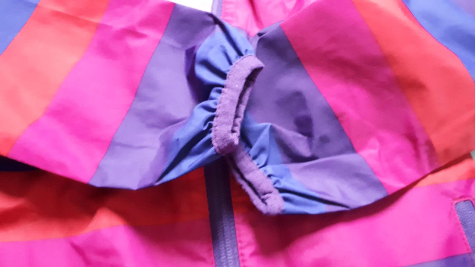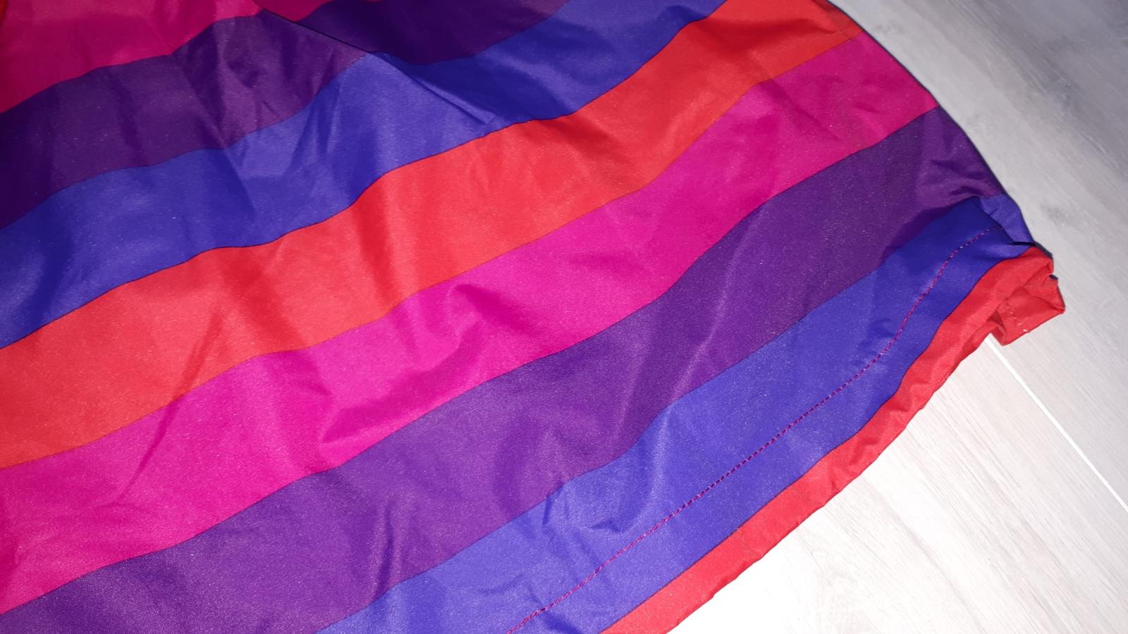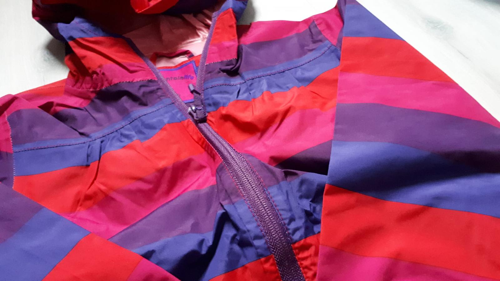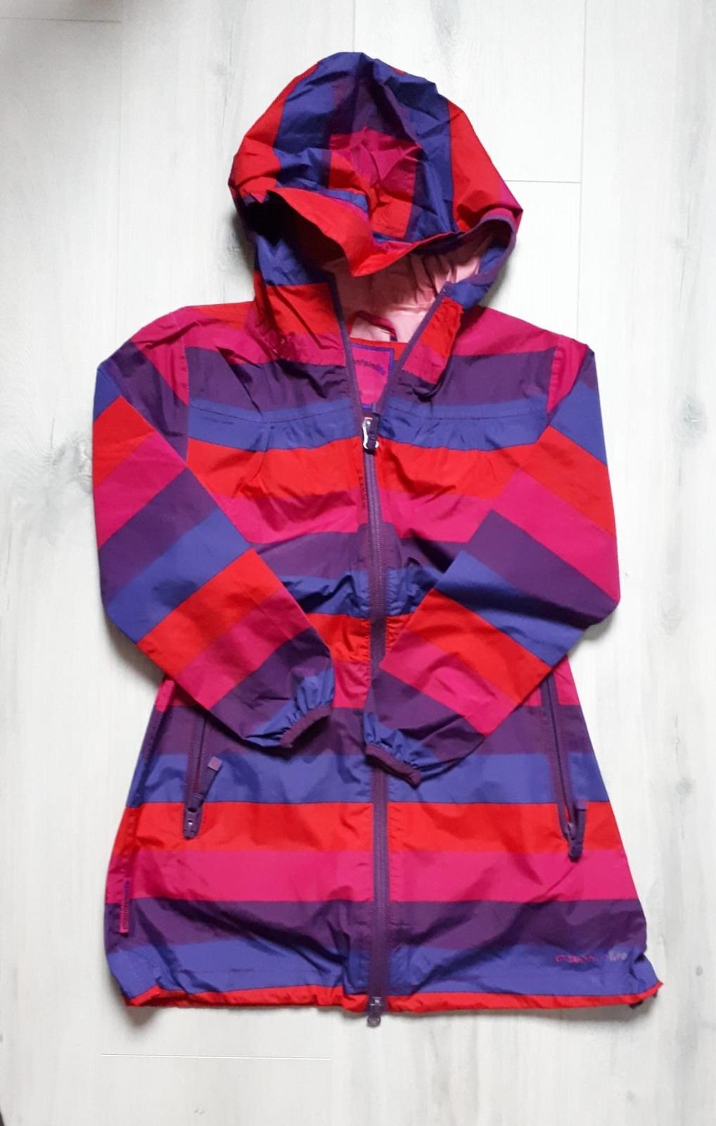 Barevný pruhovaný šusťákový outdoorový kabát, zn. Mountainlife, vel. 116. Nošený.