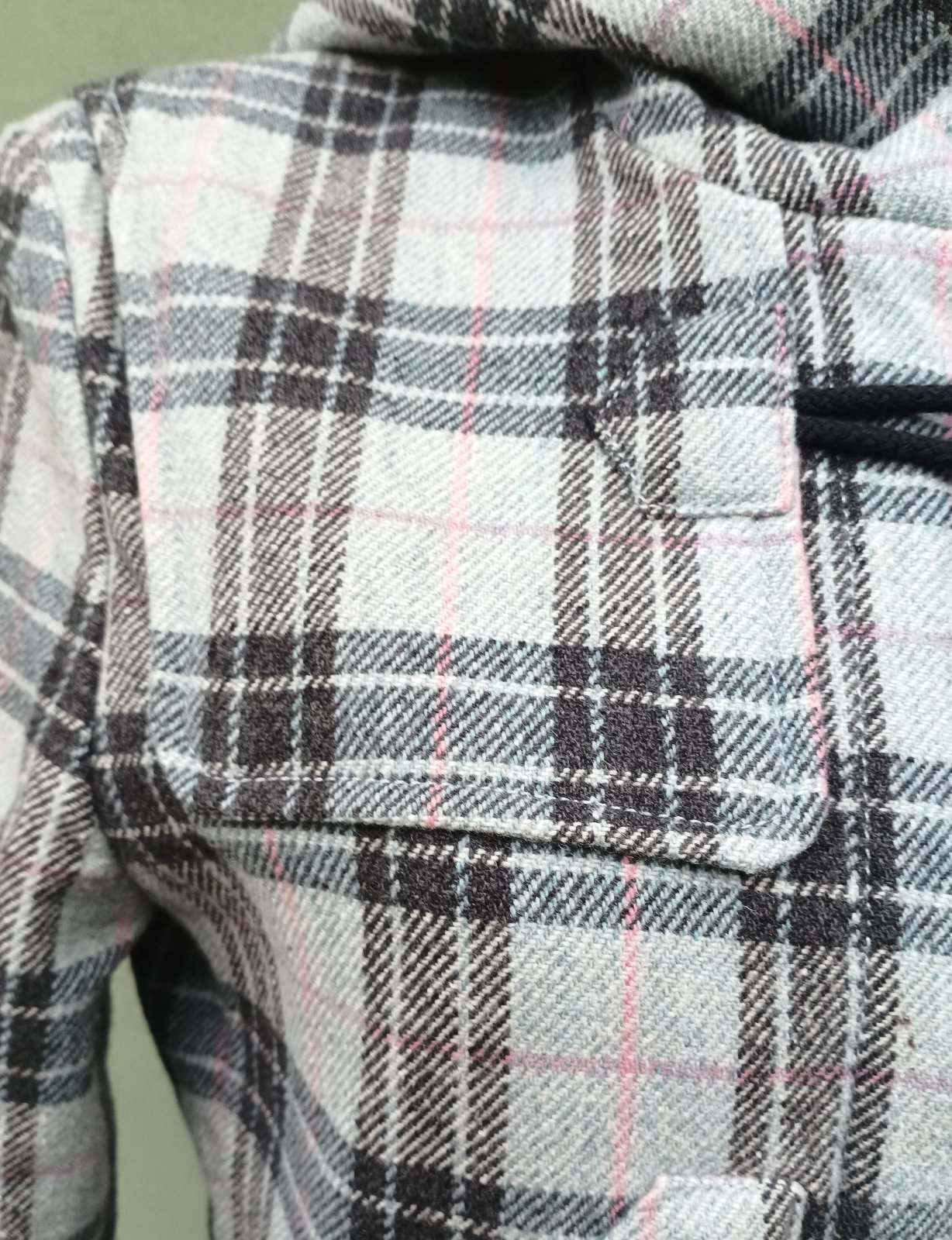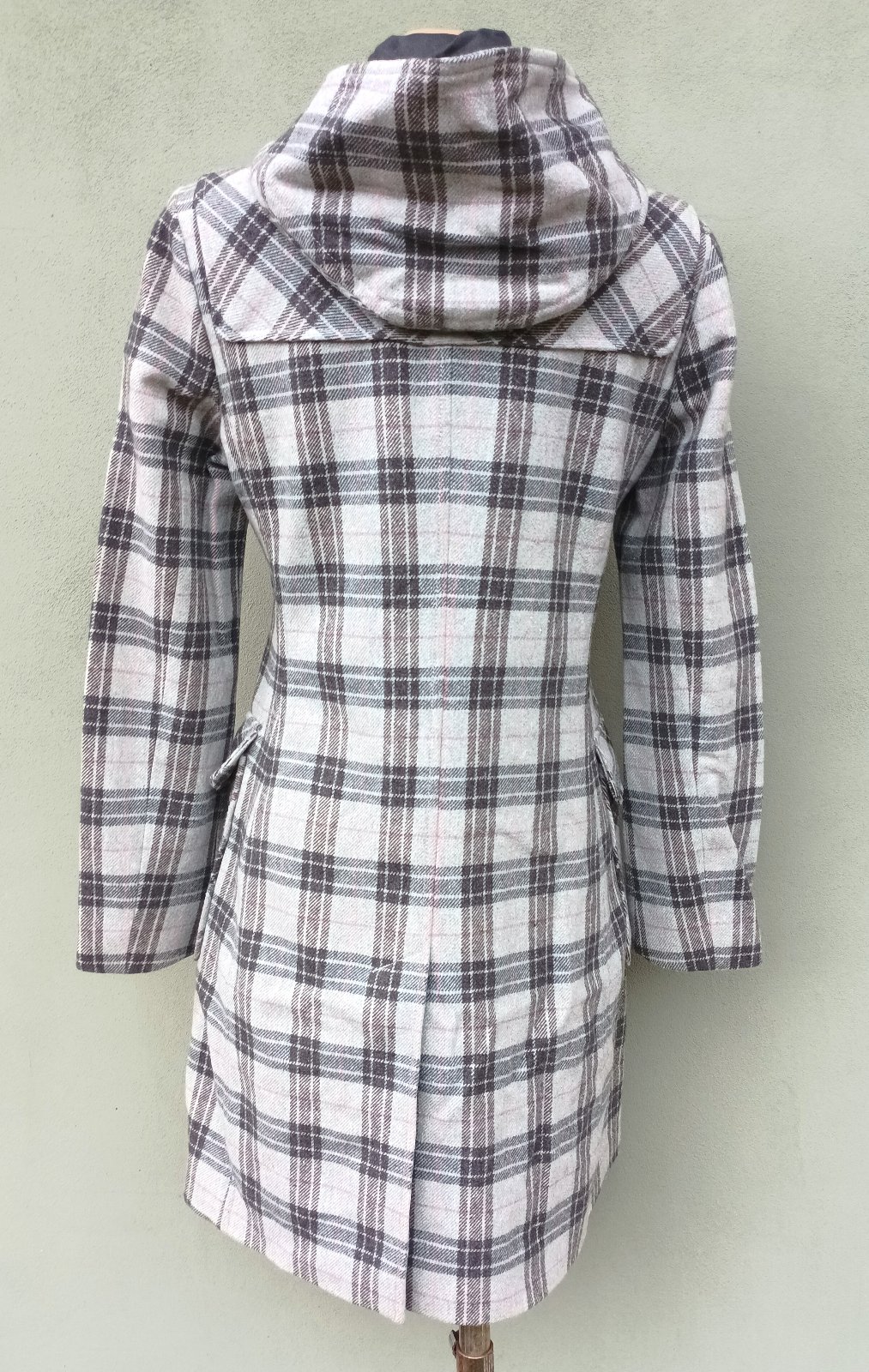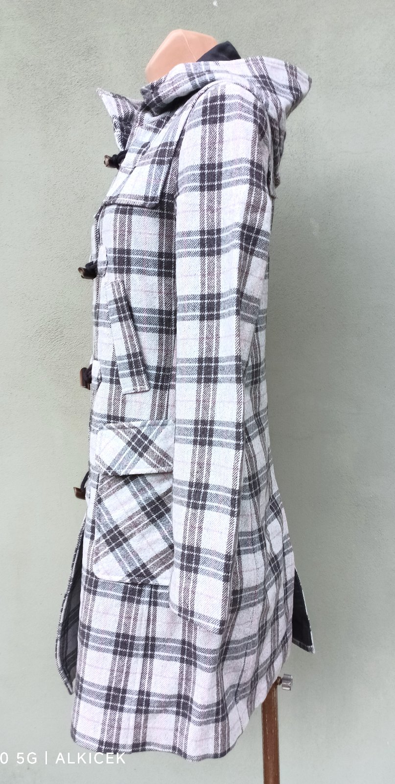 Rozměry - délka - 95 cm, šířka ramena - 42 cm, šířka průramky - 47 cm, šířka v pase - 43 cm, šířka boky v místě velkých kapes - 49 cm, šířka vespod - 59 cm, délka rukávu od ramene - 63 cm.