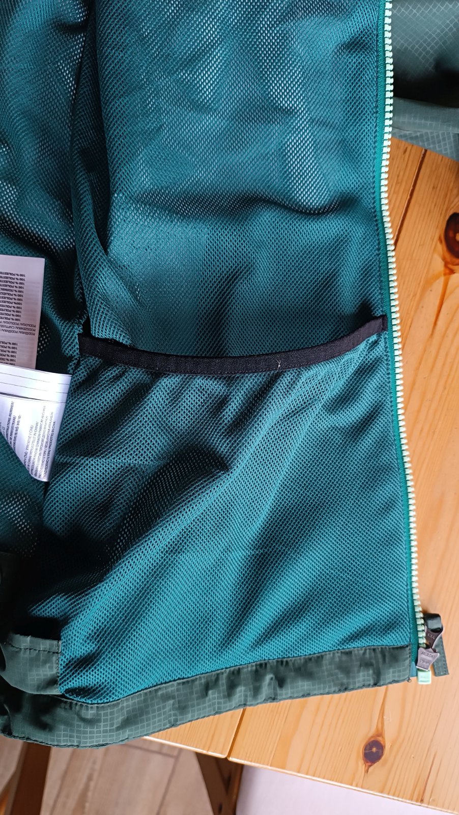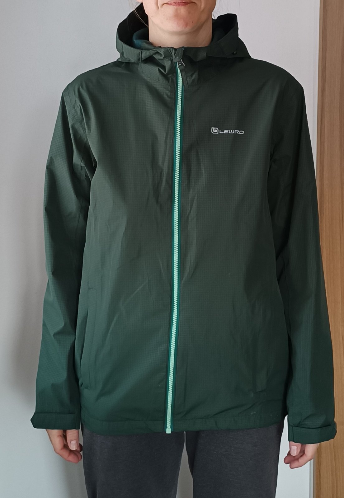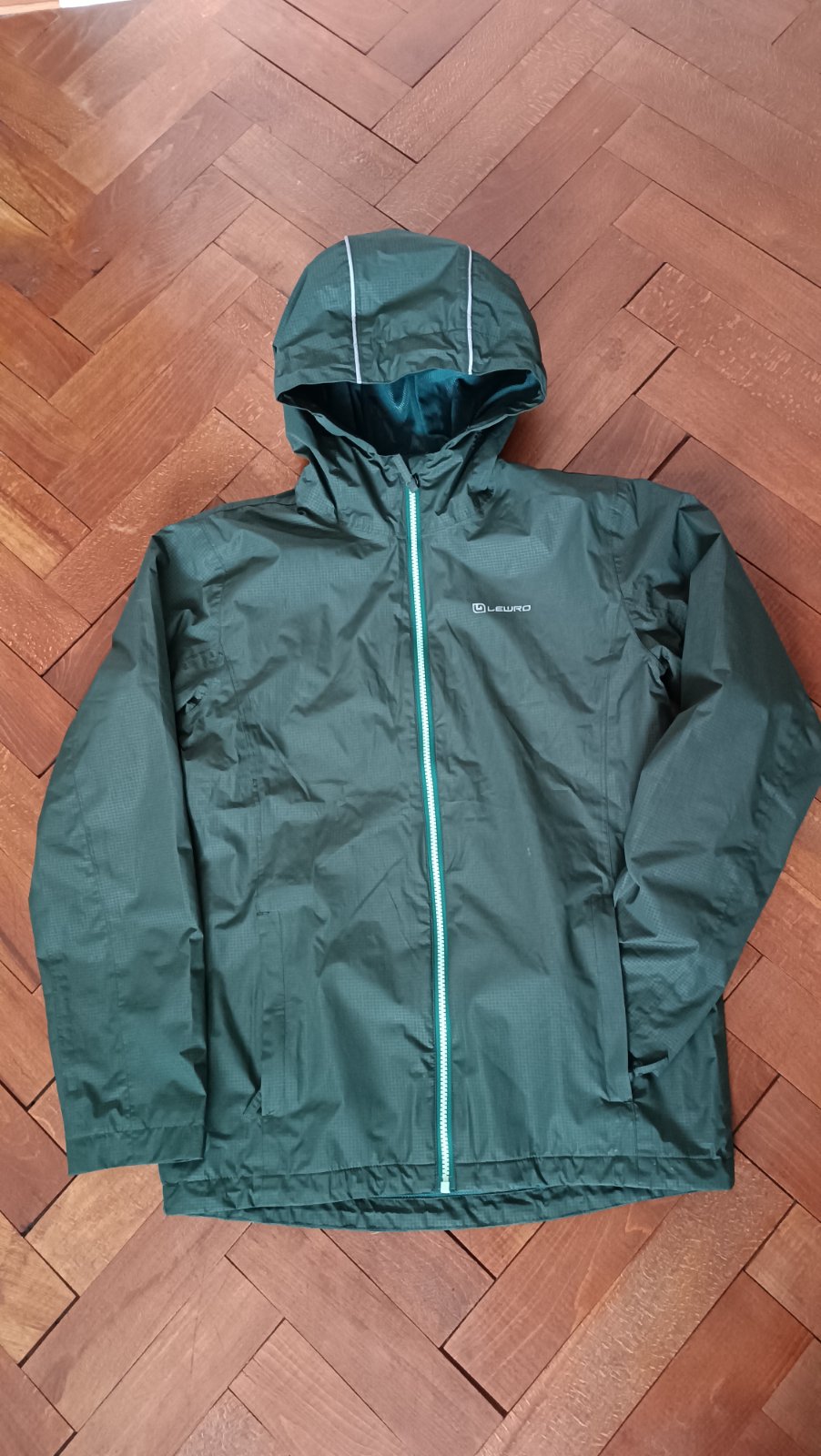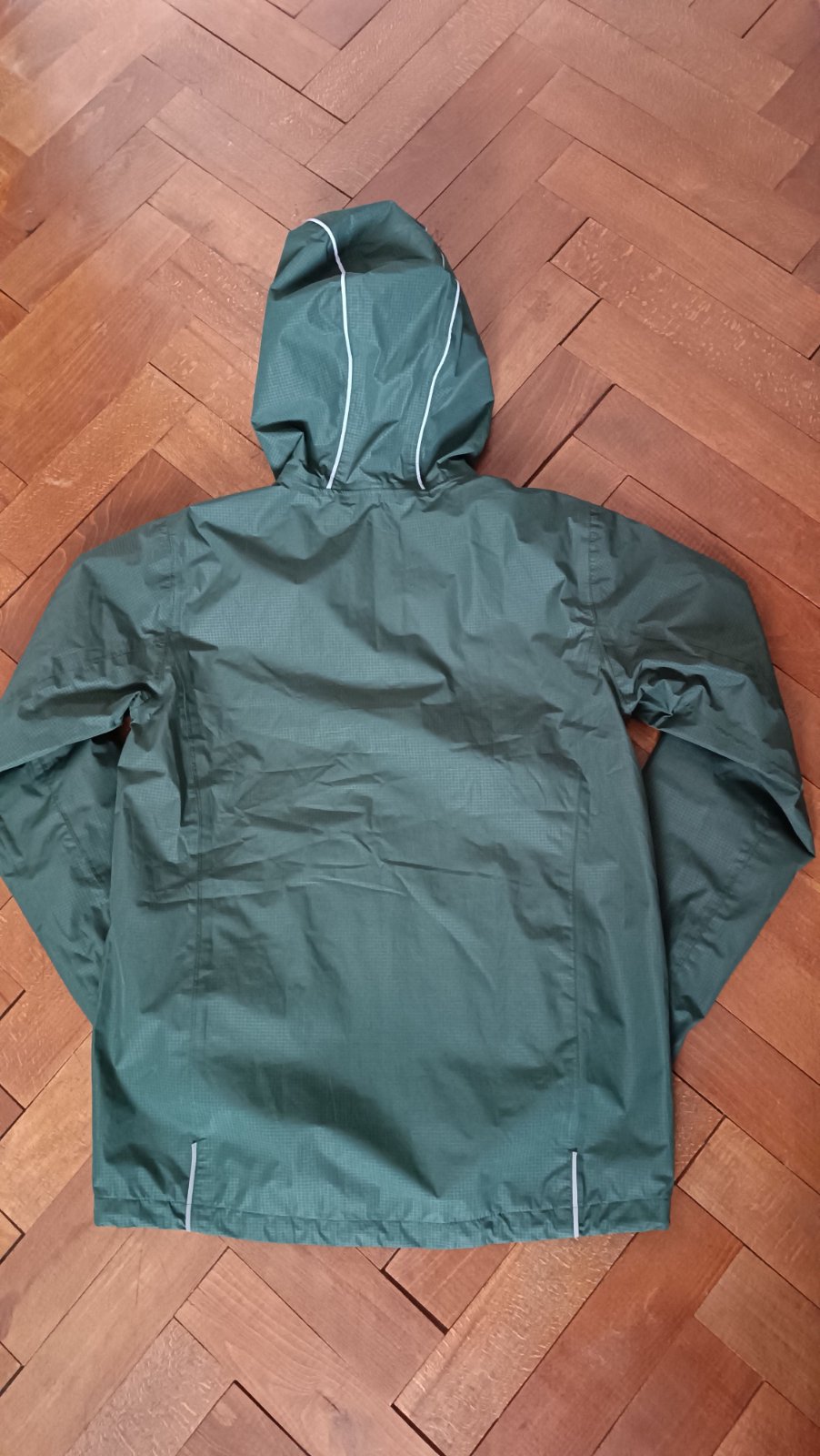 Odrazové prvky na kapuci, dole na zadní straně, dvě klasické kapsy na zip a jedna vnitřní siťovaná, hlavní zip YYK, regulace rukávů na sucháč a spodku bundy a kapuce na šňůrku s brzdičkami, vnitřek síťovaný, klasická šustka 100%PES - tenká, lehká. Membrána proti vodě (3000mm vodní sloupec)