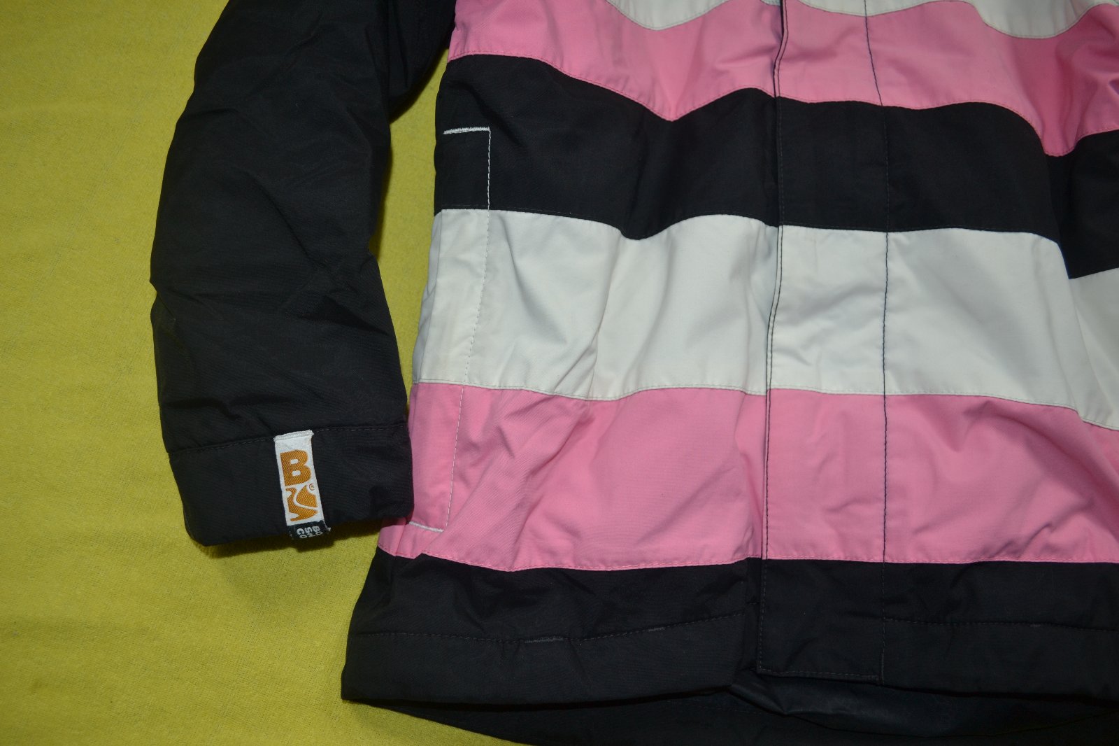 kvalitní vkusná zimní bunda v.128, kapsy na zip, uvnitř bundy protisněžný pás, rukávy na stažení,výborná praktická bunda