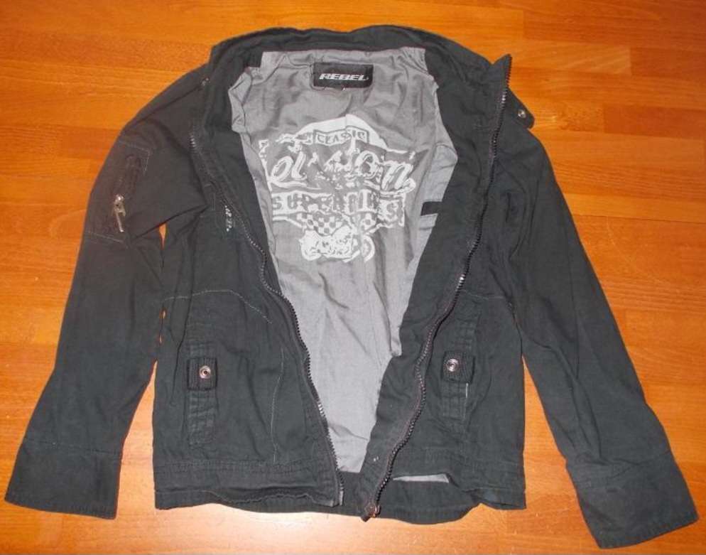 Krásná jarní/podzimní chlapecká bunda černá Rebel, vel. 152. Bunda má sytou černou barvu, nešlo mi lépe vyfotit.