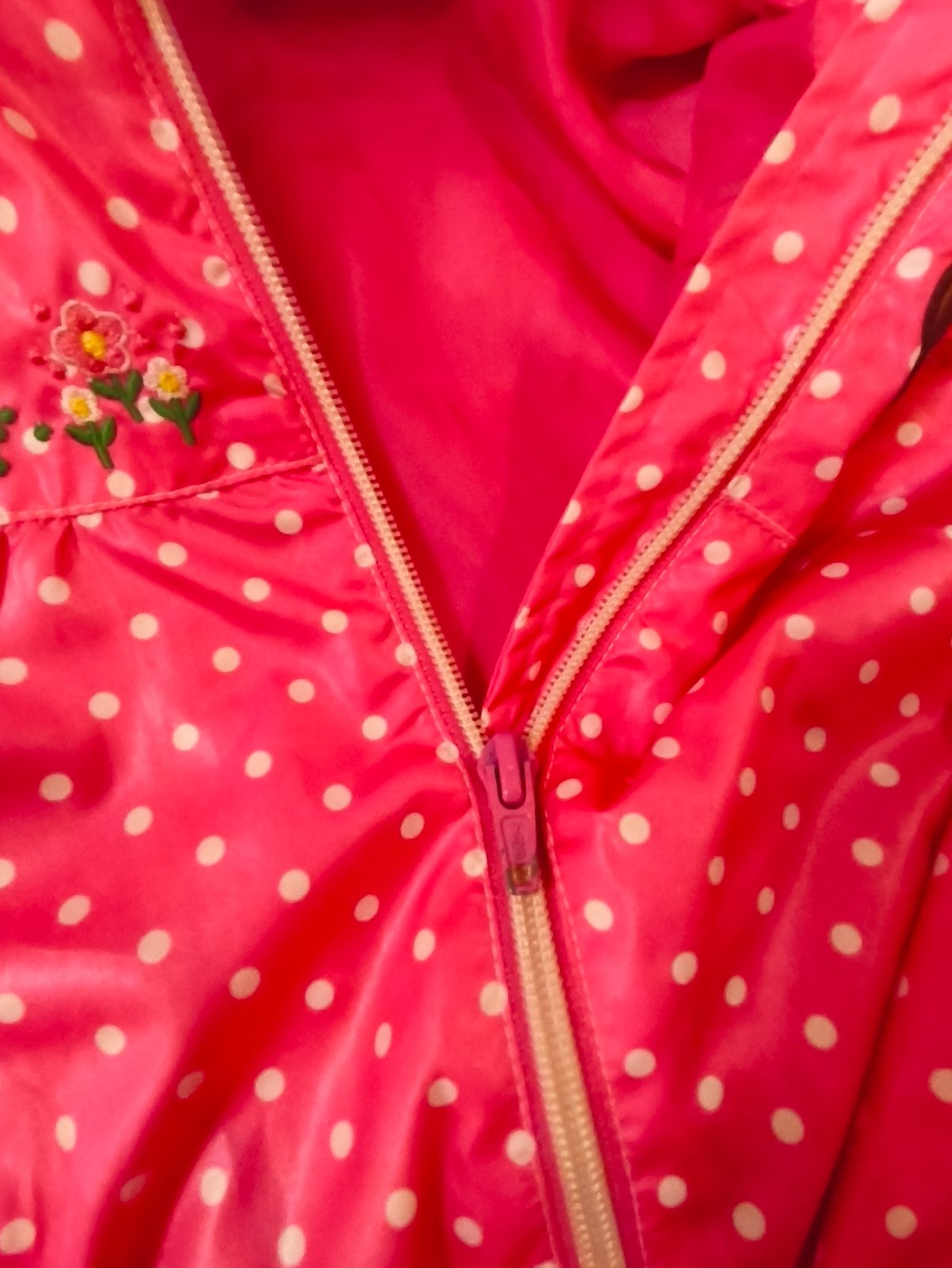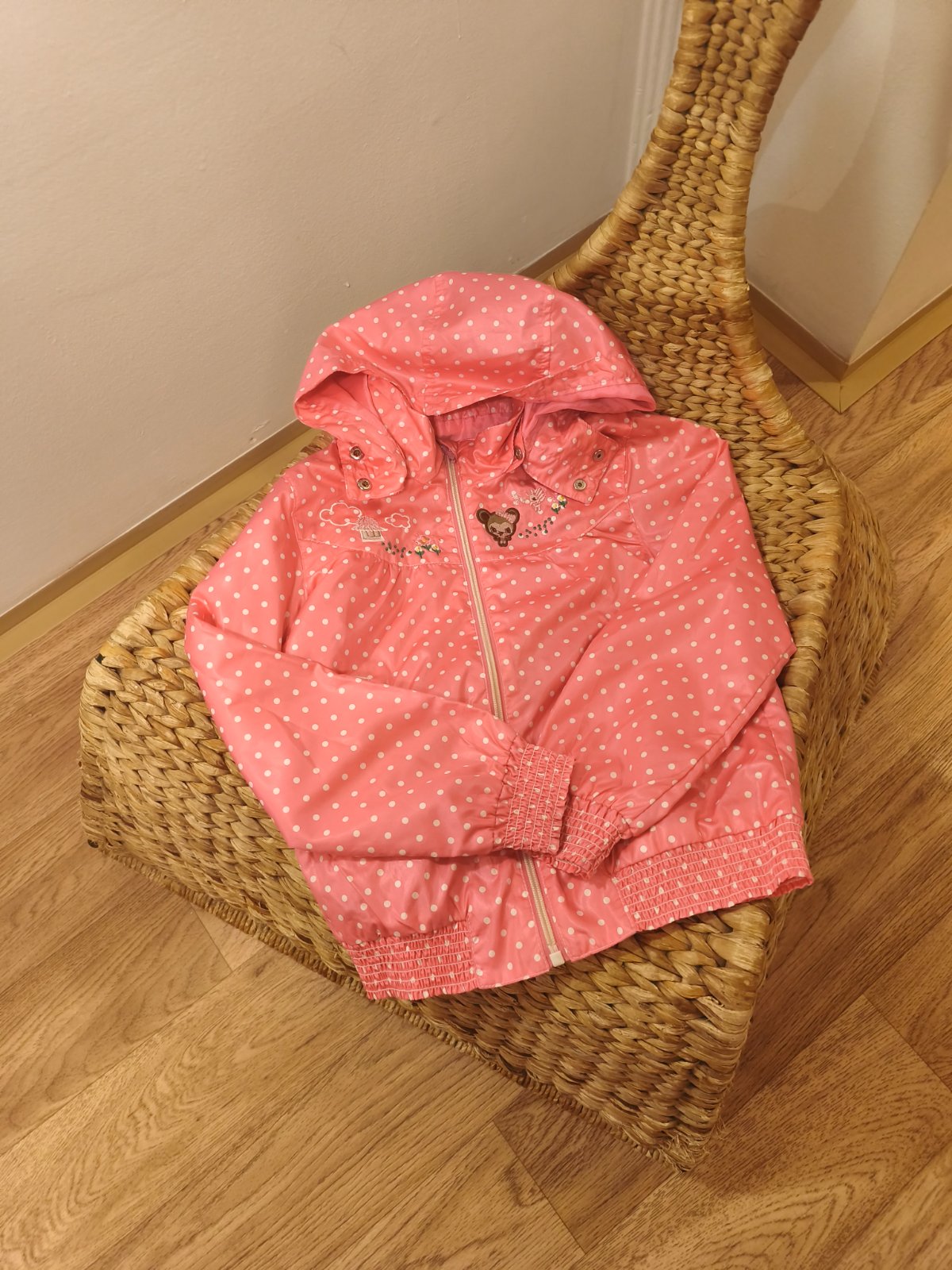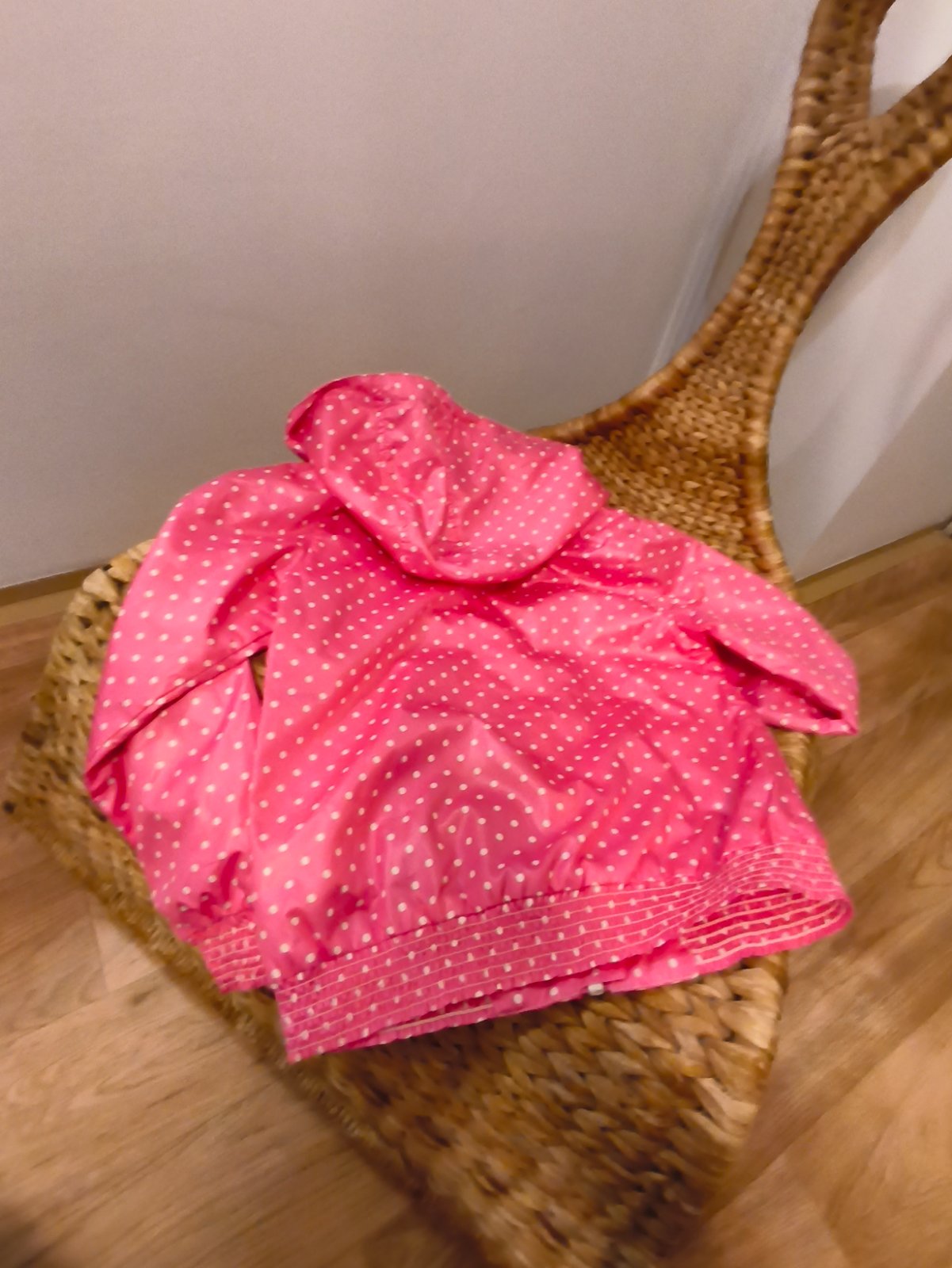 Roztomilá šusťáková bunda H&M 128, párkrát vzatá. Ošoupaný jezdec. Barva středně růžová, výrazná.