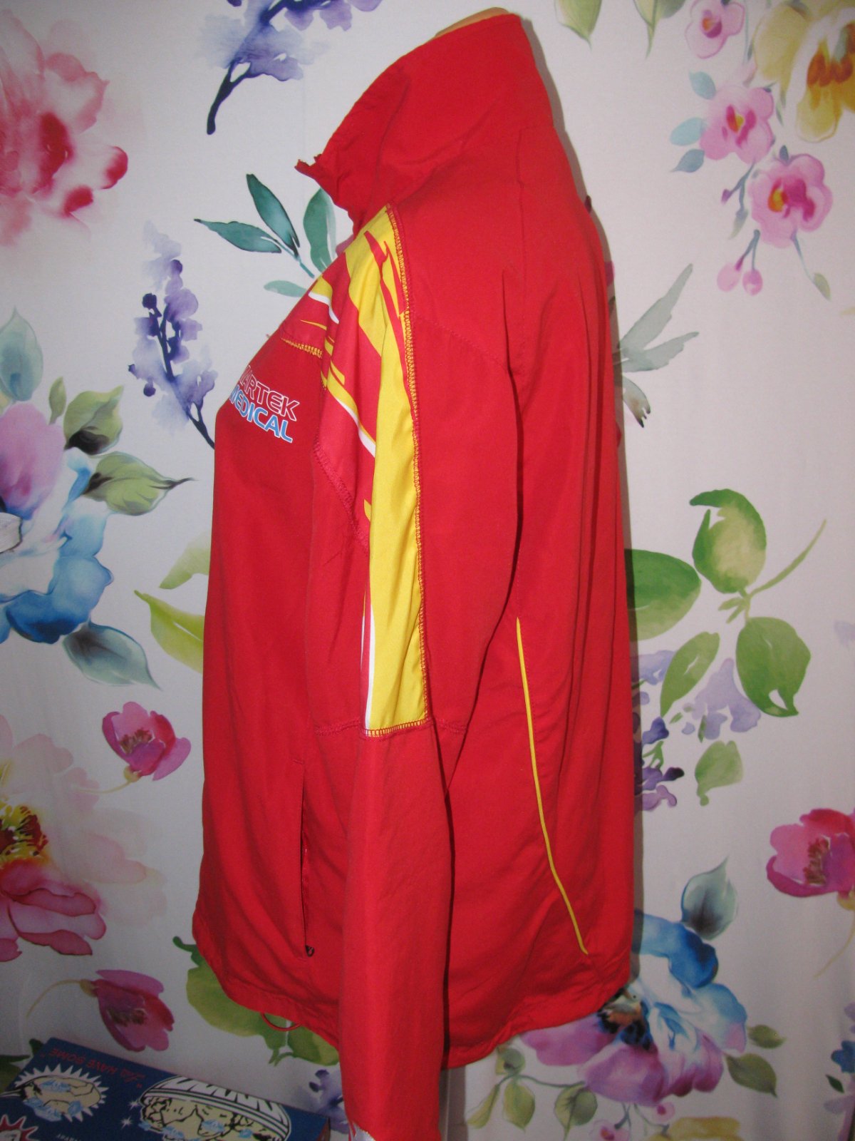 Prodám hezkou bundu, větrovku, s podšívkou, zap. na zip, boční kapsy na zip, pružné lemy na konci rukávů, spodní okraj bundy s regulací, vyšité logo. 100% polyester. Ulomený kousek kousek úchytu na jezdci-viz foto, jediná vada na bundě. Určitě užijete v práci, nebo na zahradě.