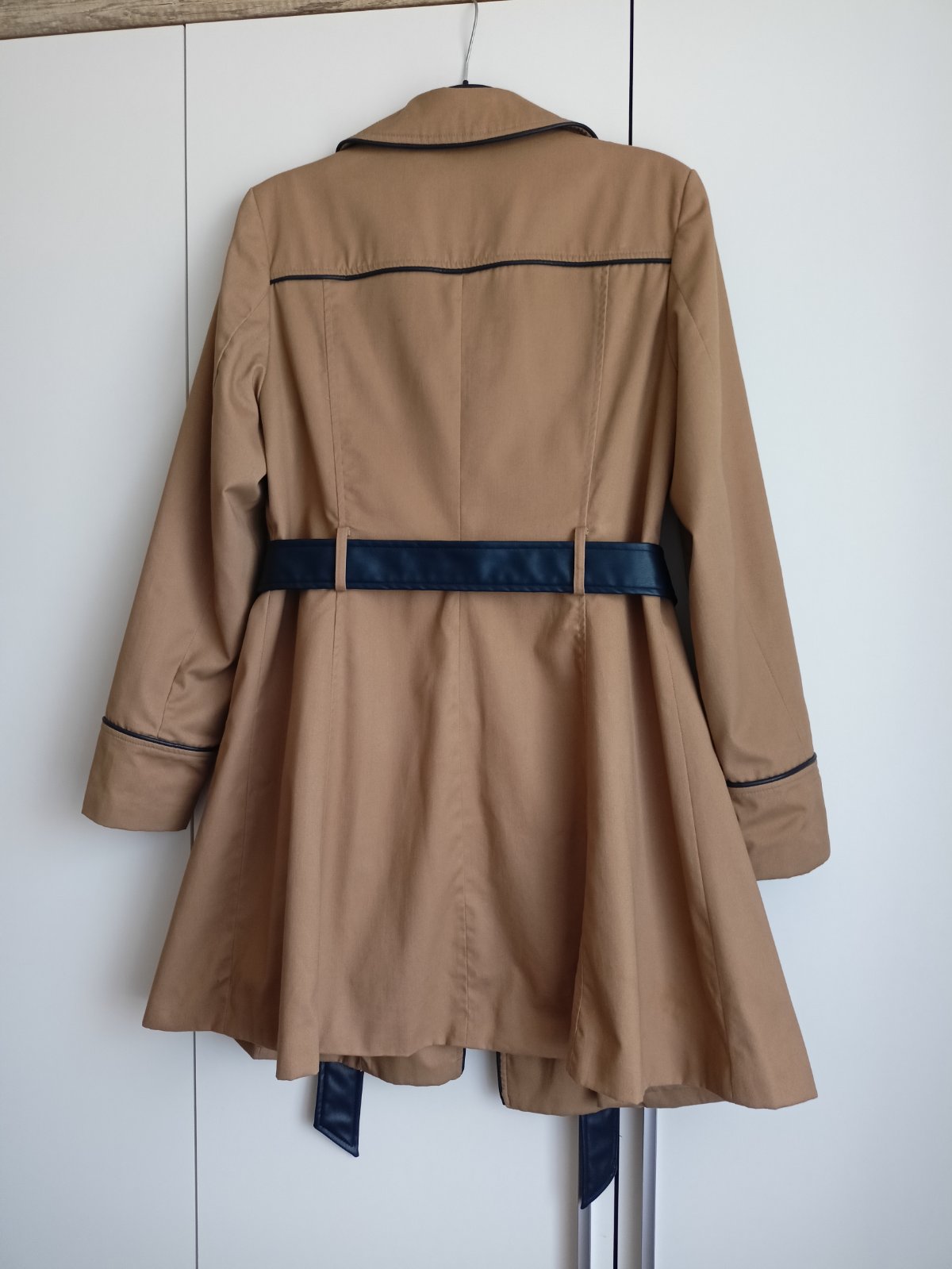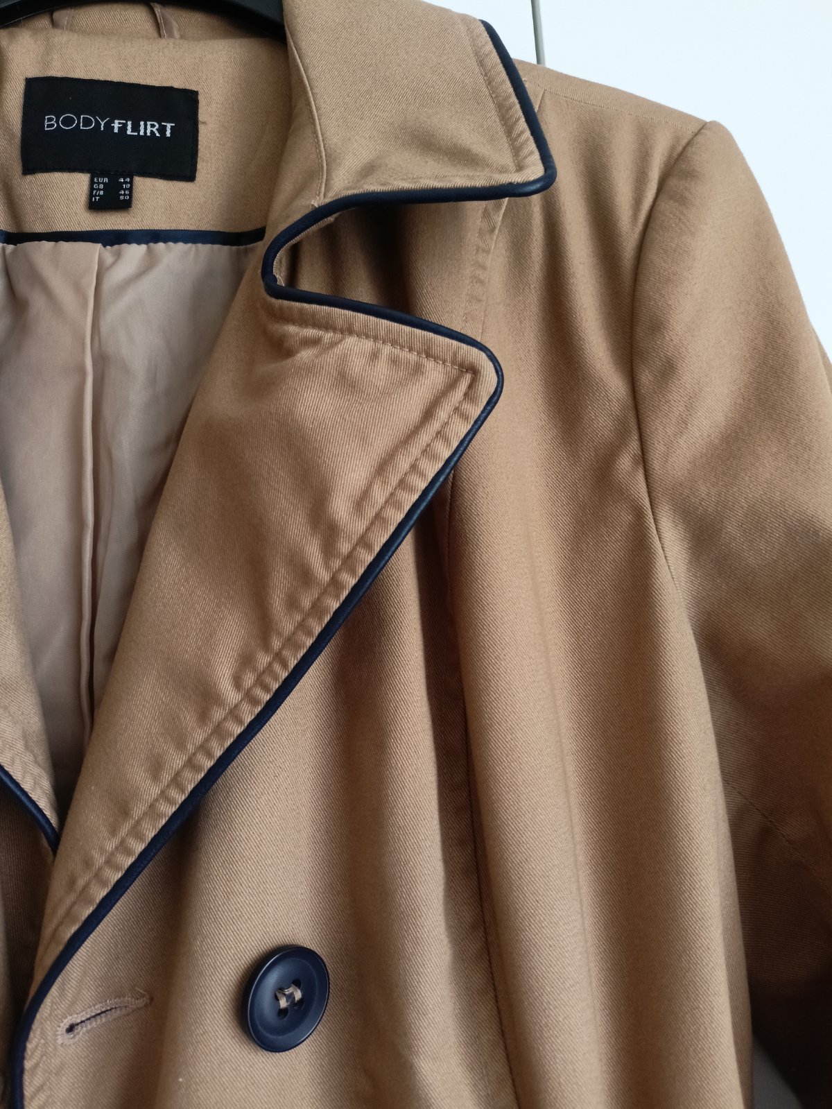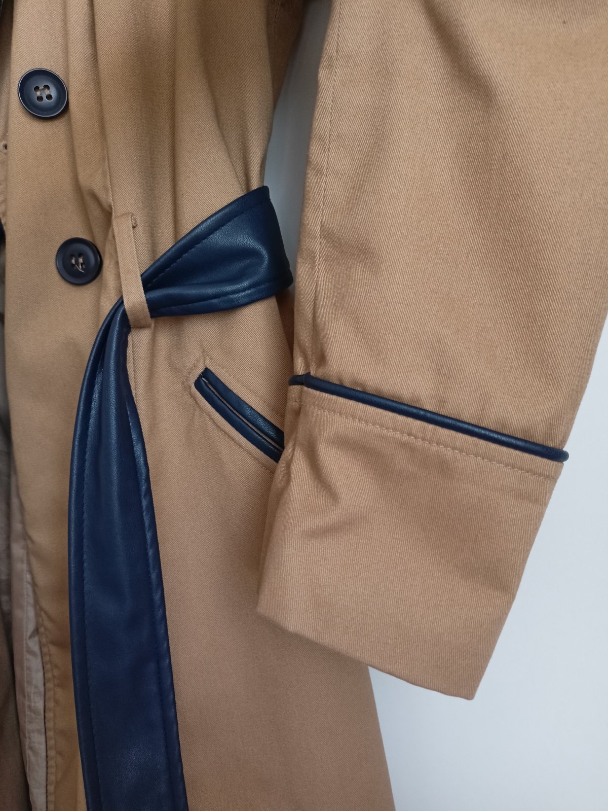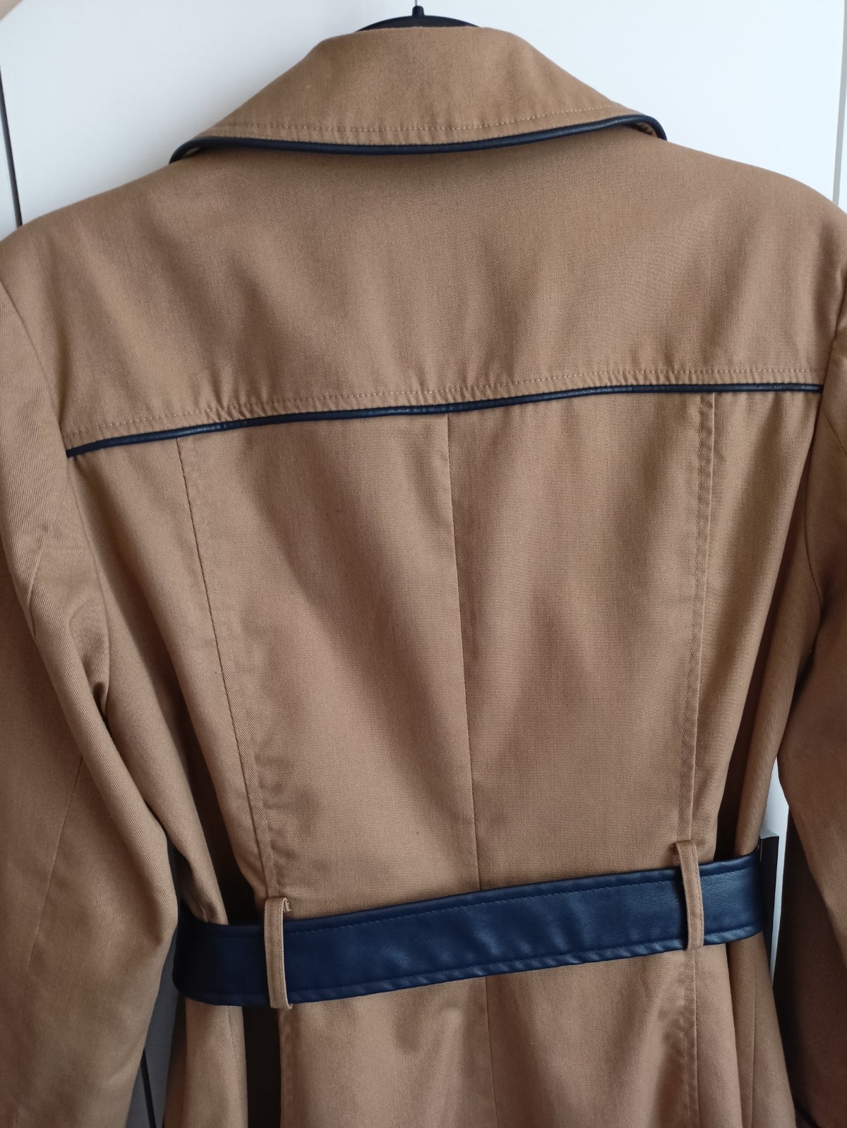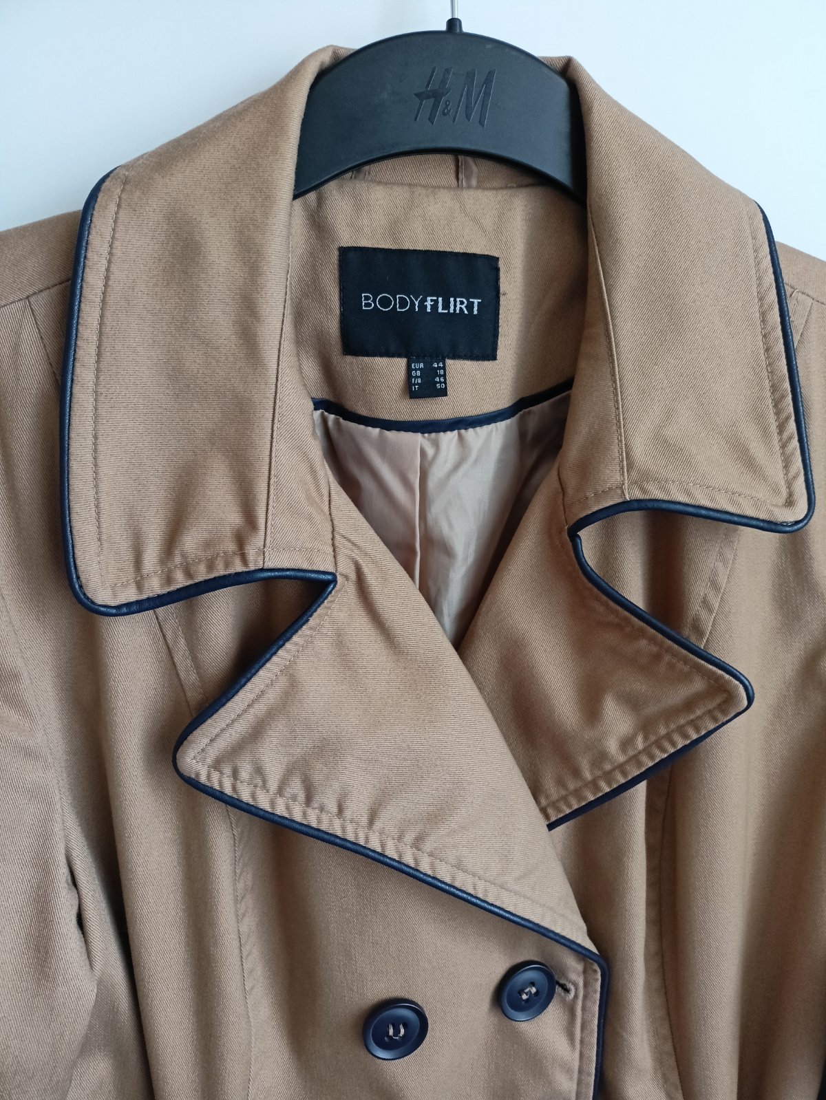 Módní trenčkot s nadčasovými barevnými kontrasty. Působivý trenčkot s klopou a dvouřadou knoflíkovou lištou. Vsadky z umělé kůže upoutají pozornost. S klasickým páskem v pase pro ženský vypasovaný vzhled.