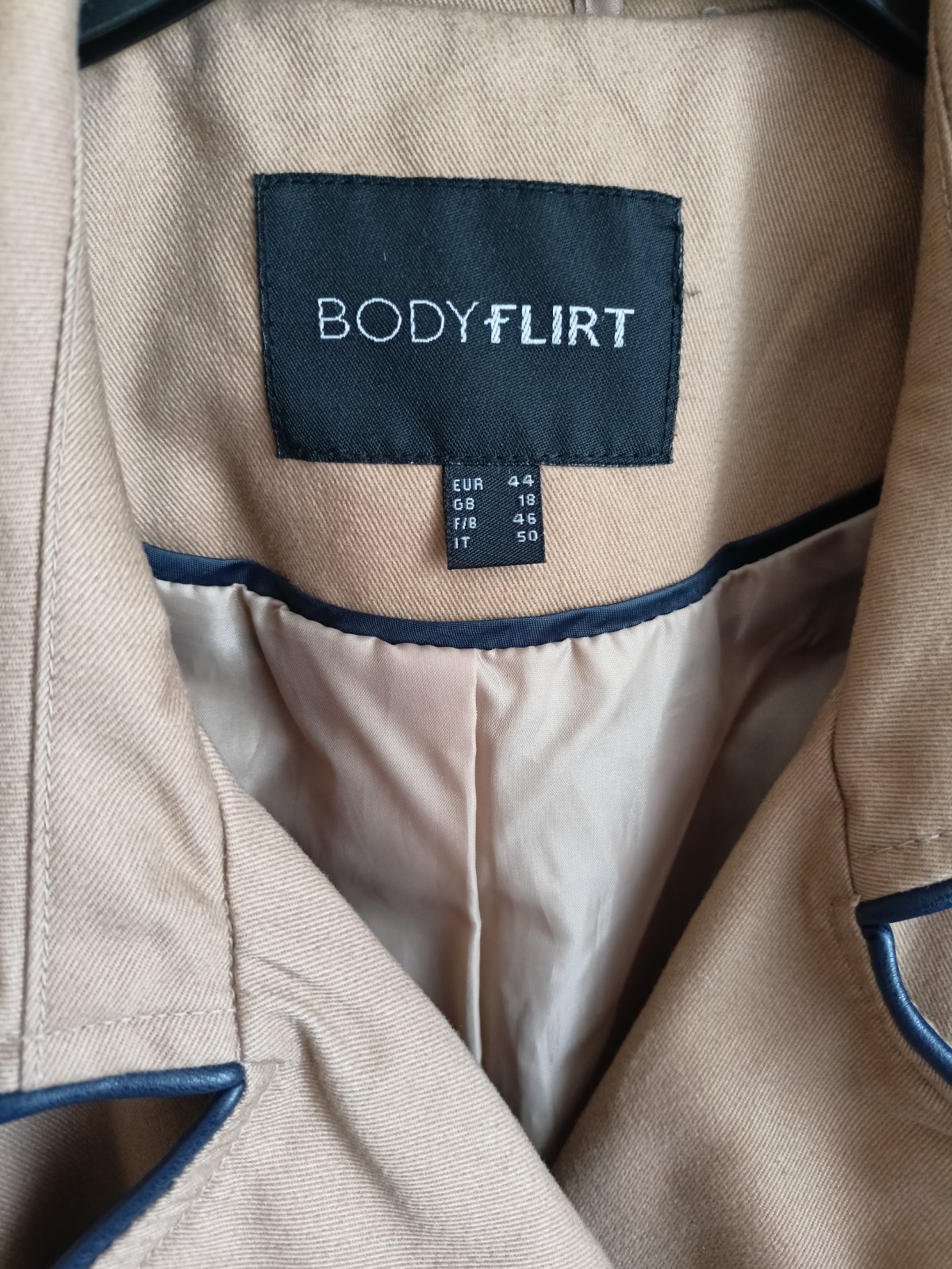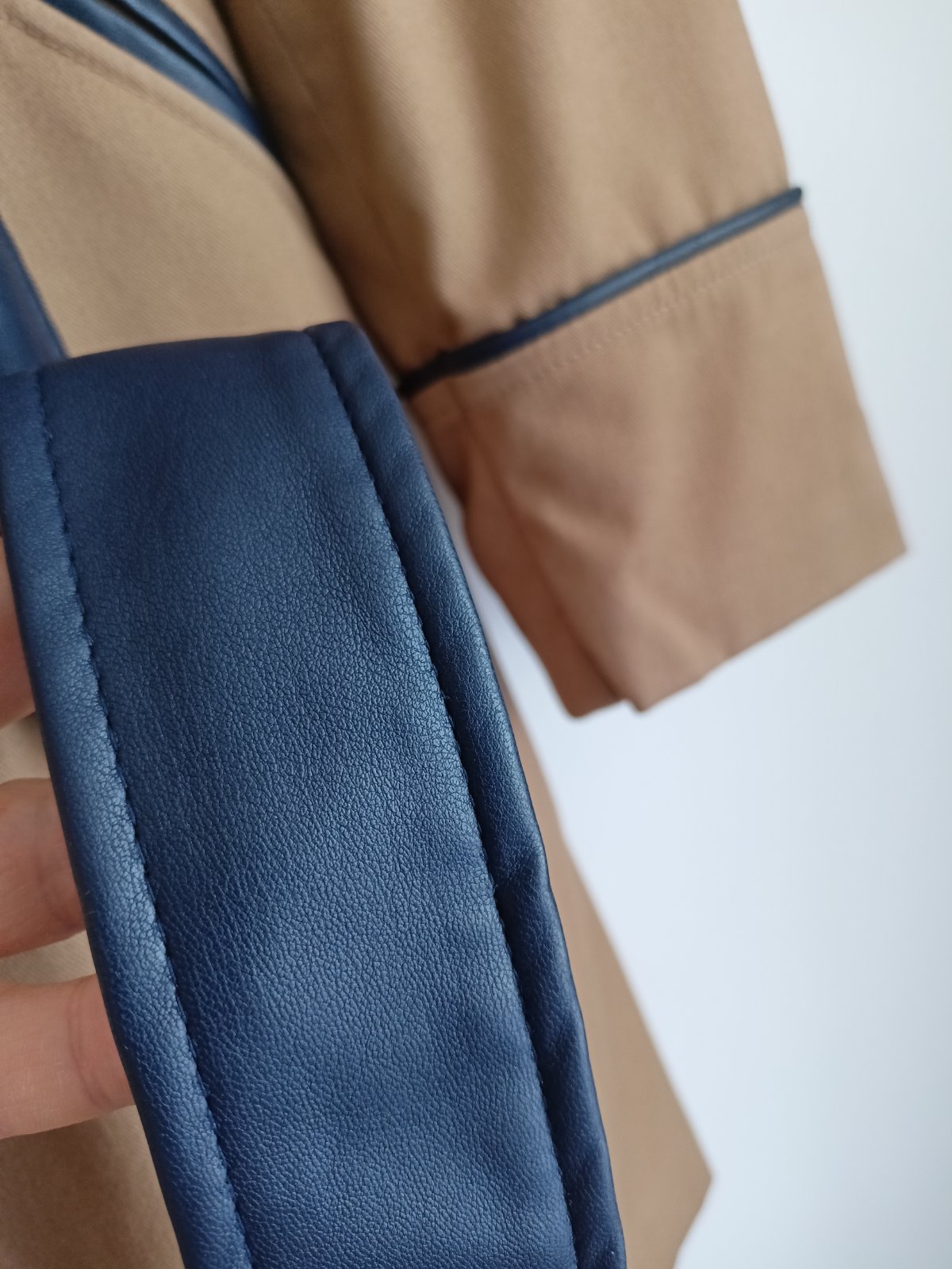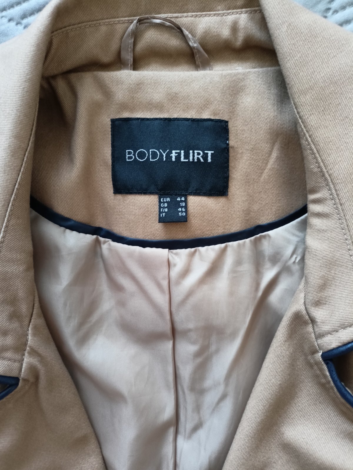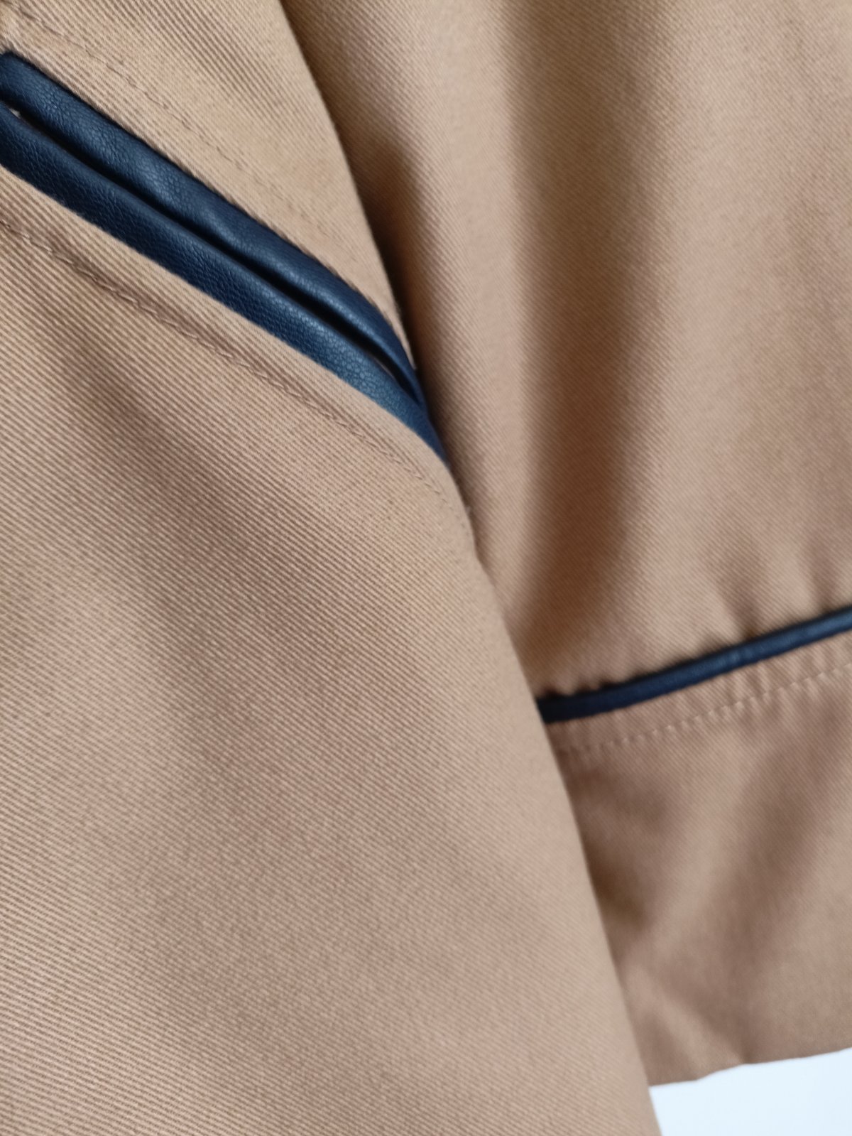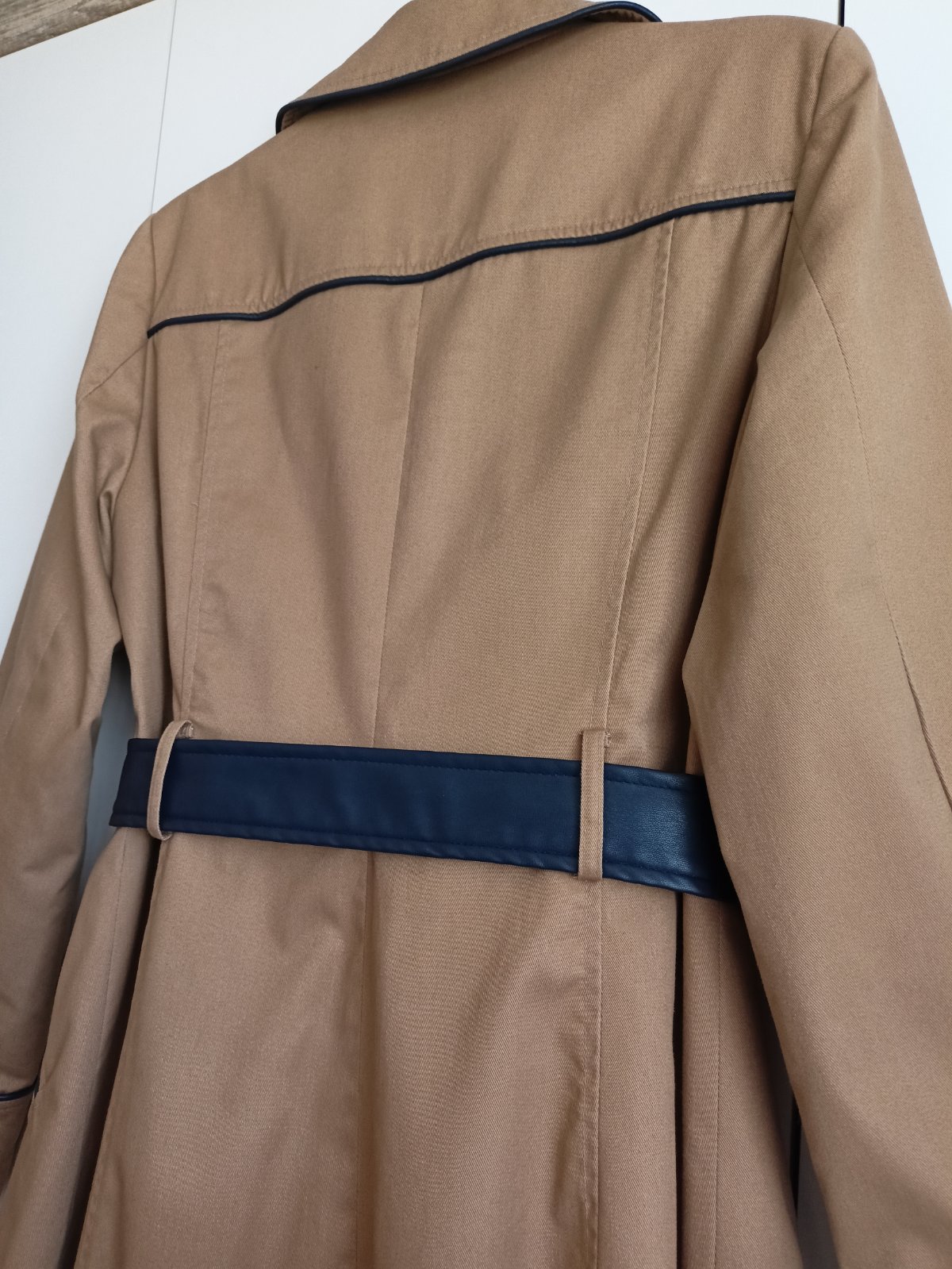 Módní trenčkot s nadčasovými barevnými kontrasty. Působivý trenčkot s klopou a dvouřadou knoflíkovou lištou. Vsadky z umělé kůže upoutají pozornost. S klasickým páskem v pase pro ženský vypasovaný vzhled.