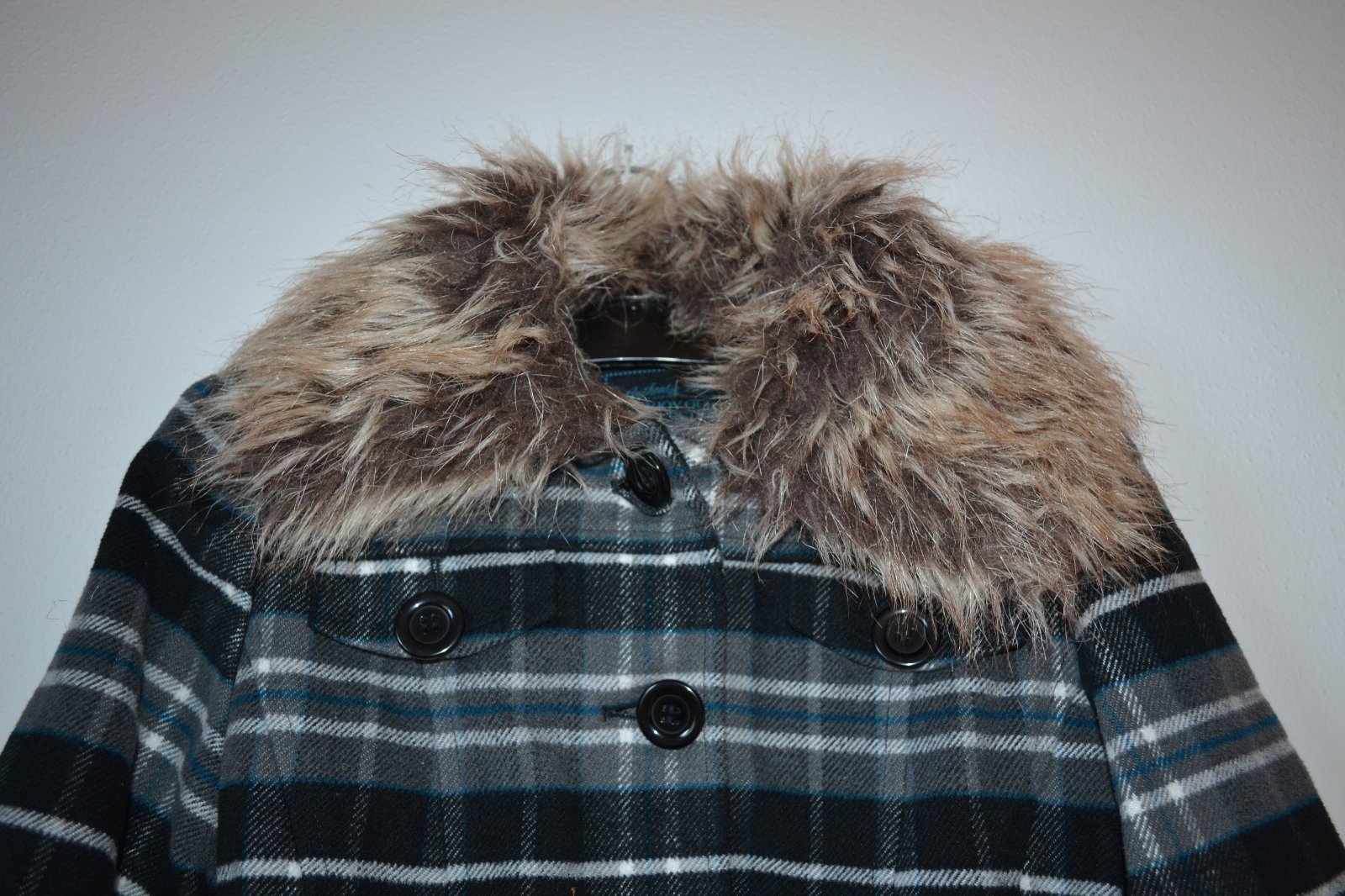 Nabízím nošený kabát zn. C&A vel.140. Délka 56 cm. Šířka v průramcích 42 cm, rukáv od krku 62 cm. Kožešinu z límce lze sundat.