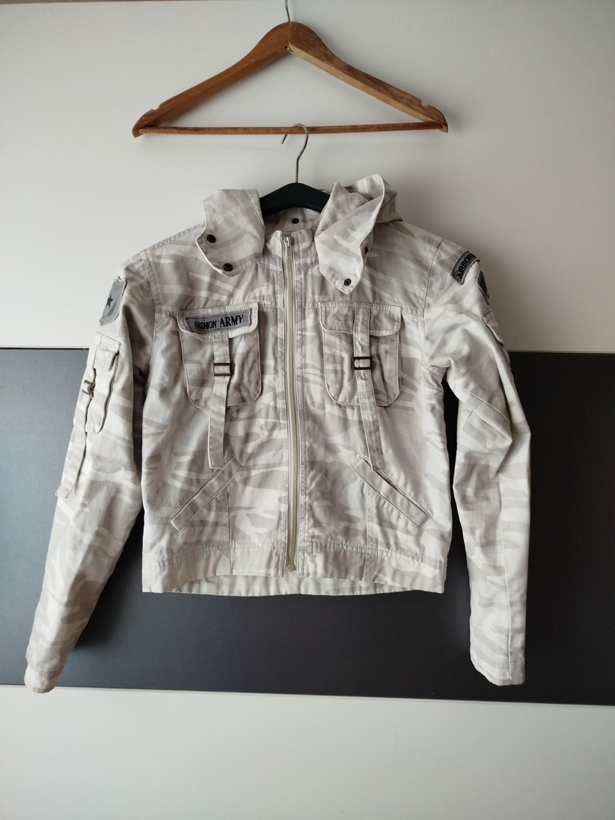 Délka 50cm, šířka 48cm, rukáv od ramene 60cm, kapuce je odepínací