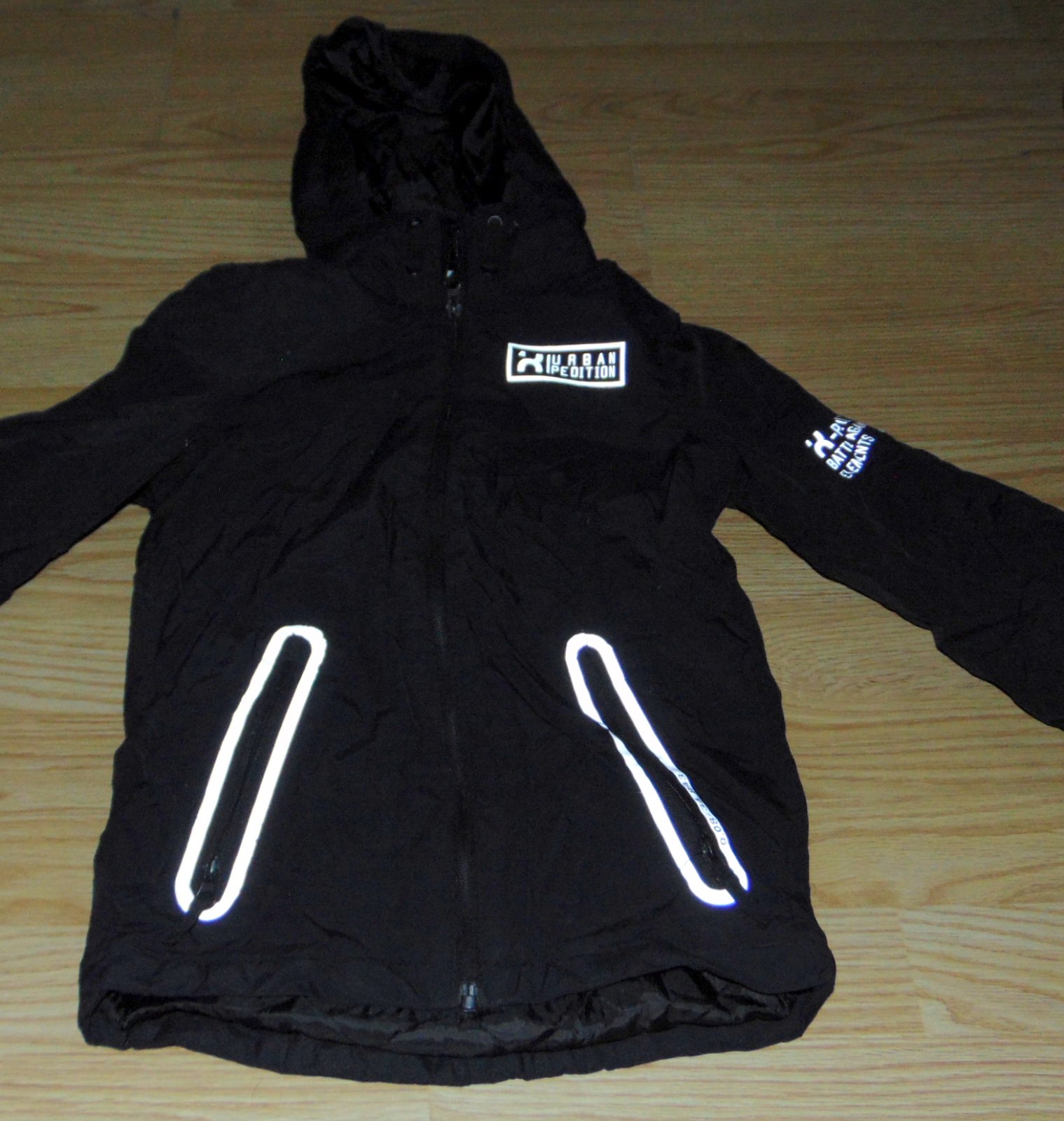Pěkná, pouze se na pár místech loupe reflexní prvek. Délka 57 cm, šířka 2x43 cm, délka rukávu od krku 51 cm.