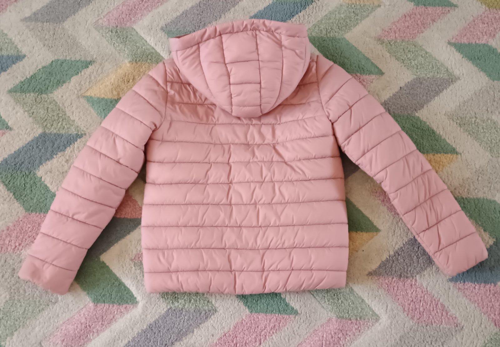 Pěkná lehká růžovo-stříbrná jarní bunda, s kapucí, zapínání na zip, kapsy na zip, snadno složitelná do kapuce, vel. 152, cena jen 79 Kč, zn. Sinsay. Poštovné: 75 Kč Balíkovna nebo 89 Kč Zásilkovna