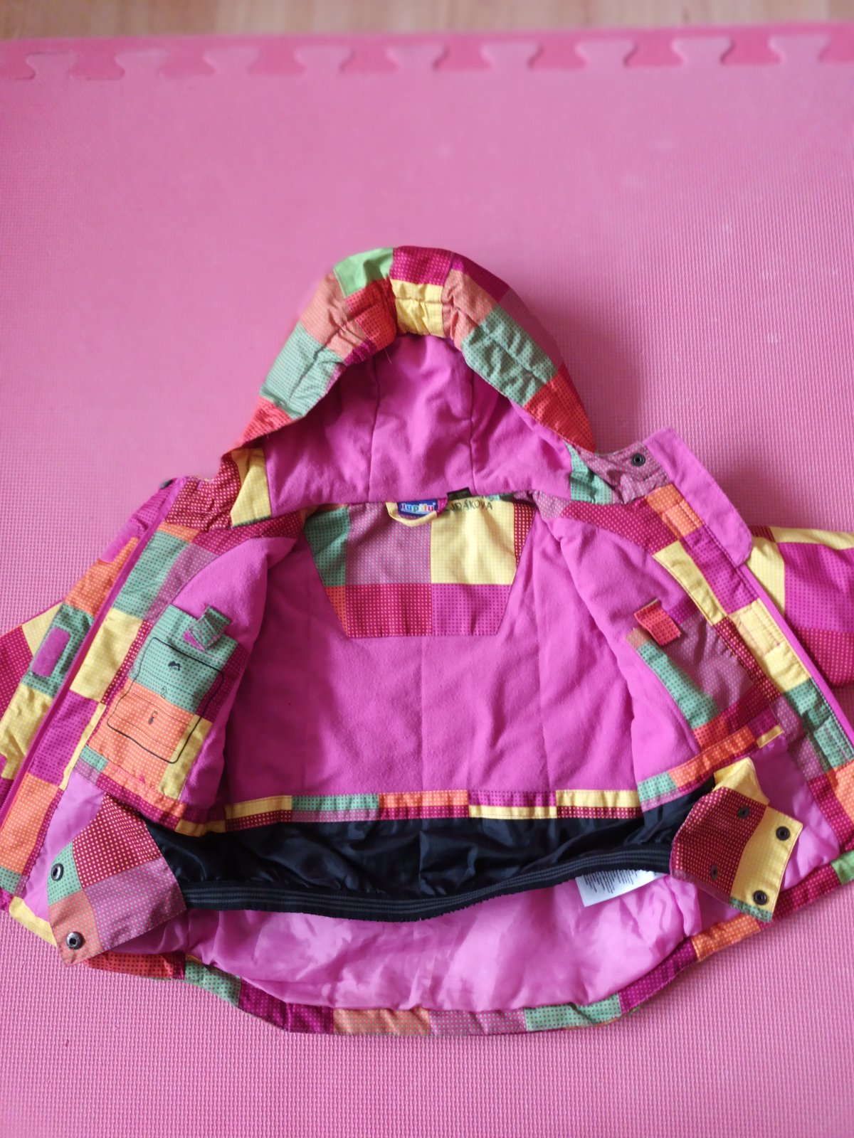 Nabízím zimní lyžařskou bundu velikost 86/92. Kvalitně zpracována, nepromokavá, protisněhový pás, kapuce, prodloužený zadni díl. Vevnitř fleece. Nošená, bez vad. Délka 43cm, šířka 37cm.