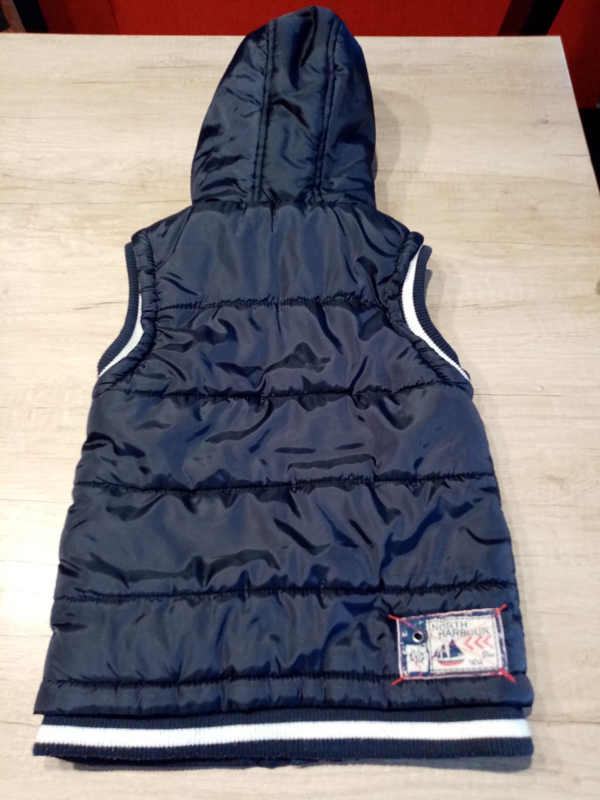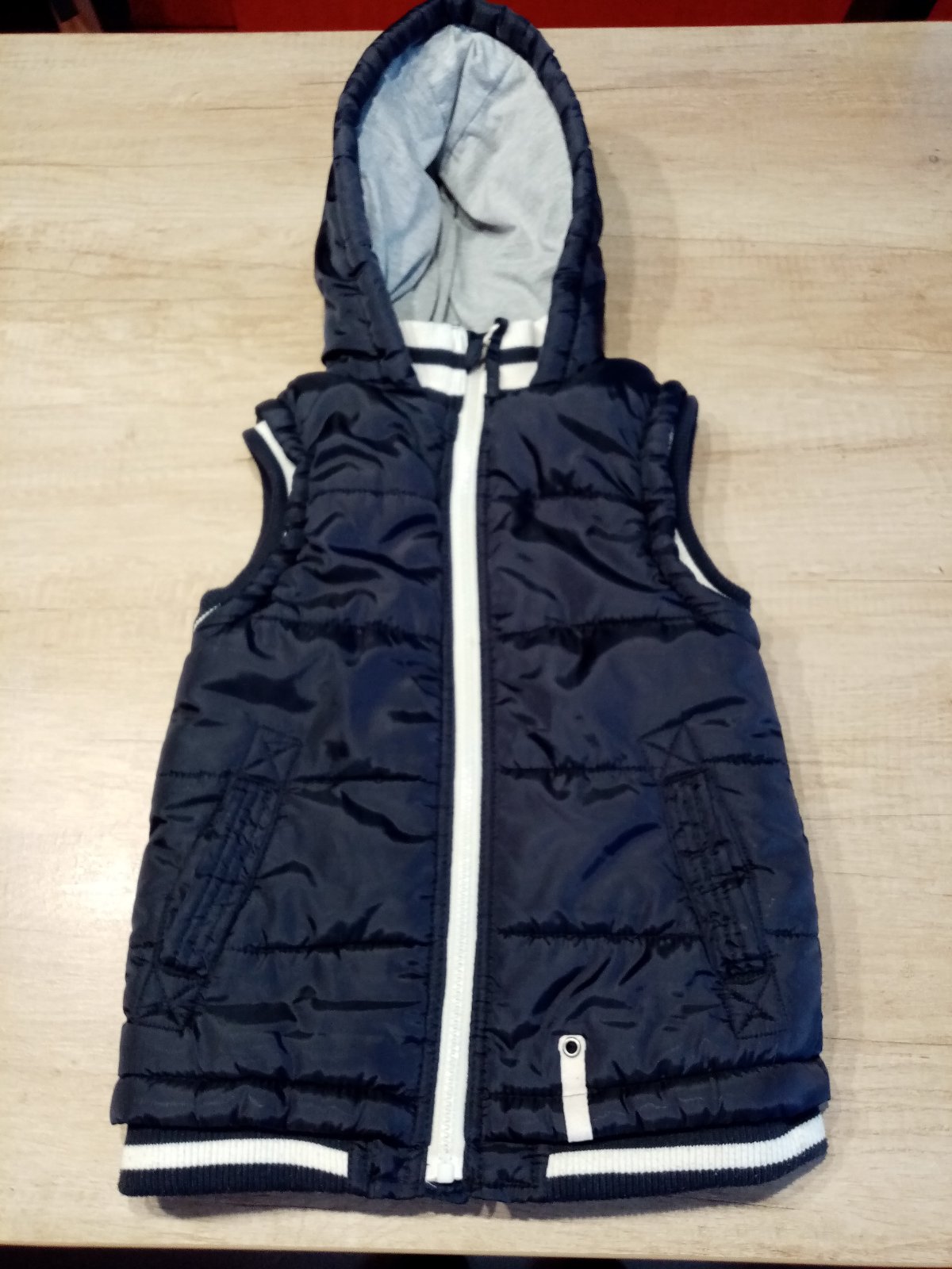 Vesta zn. H&M, vel. 116, nošená a praná, bohužel nemáme kapuci, syn je nesnáší a nemůžeme ji už najít, jinak na parádu, barva tmavě modrá. Rozměry: hrudník 2 x 36 cm, délka od ramene 42 cm. Pošto...