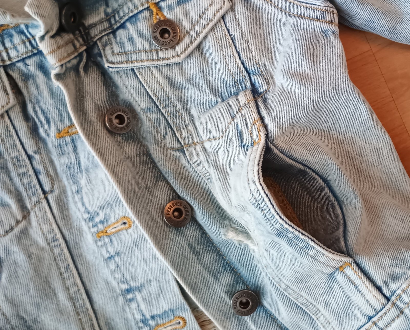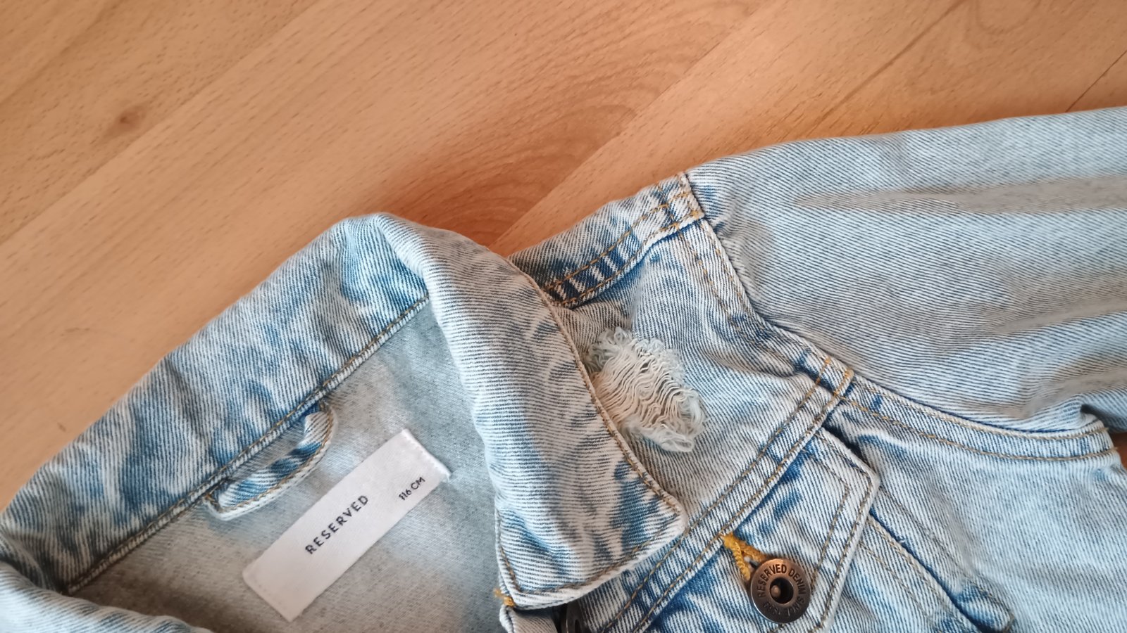 Bundička s tenkou podšívkou. Velikost odhadem 116, šířka 39 cm, CD od ramene, 42 cm, rukáv od krku 50,5 cm. Bez vad a fleků, stále v krásném stavu.