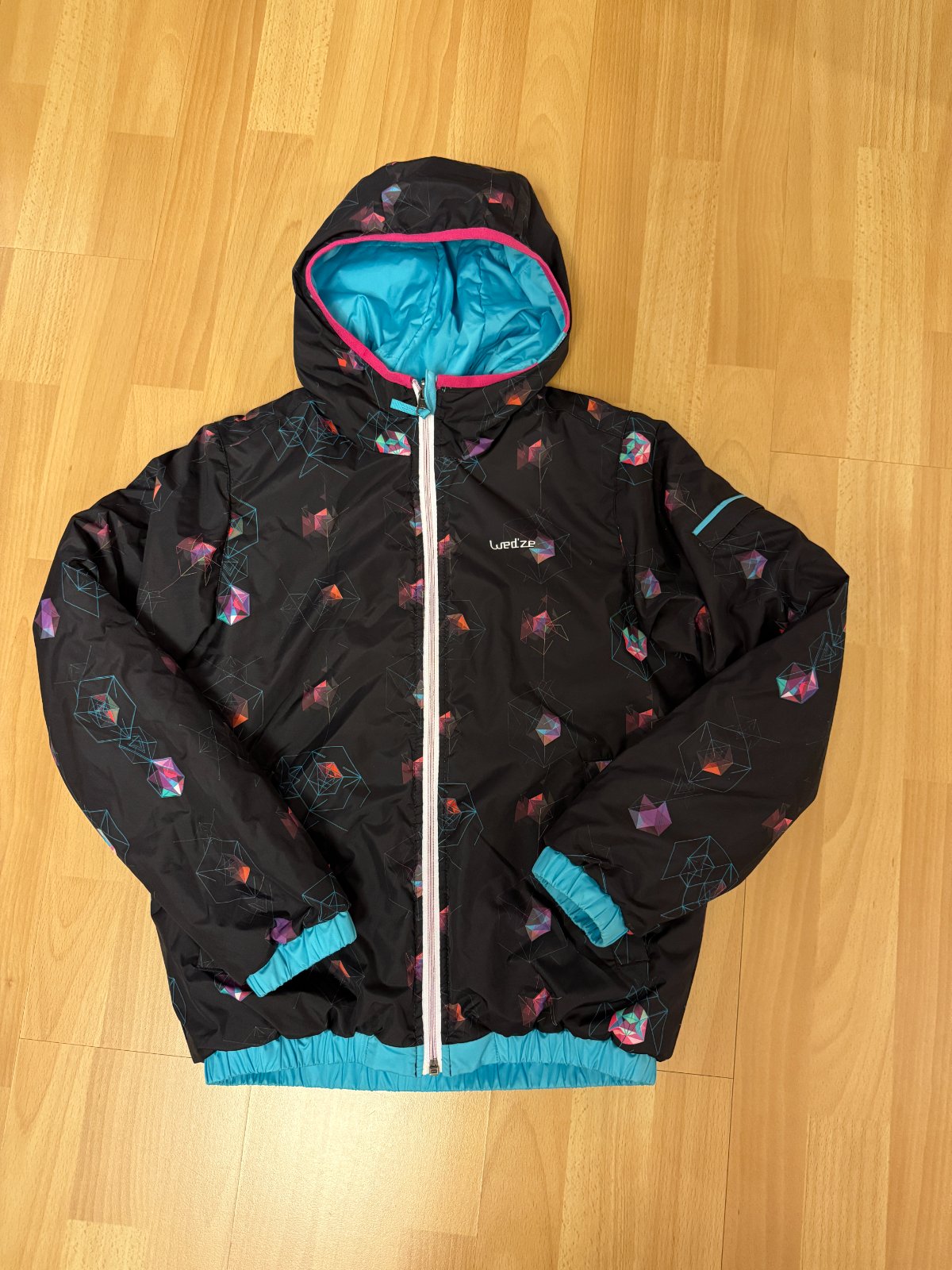 Oboustranná super bunda, Černá s diamanty a tyrkysová.